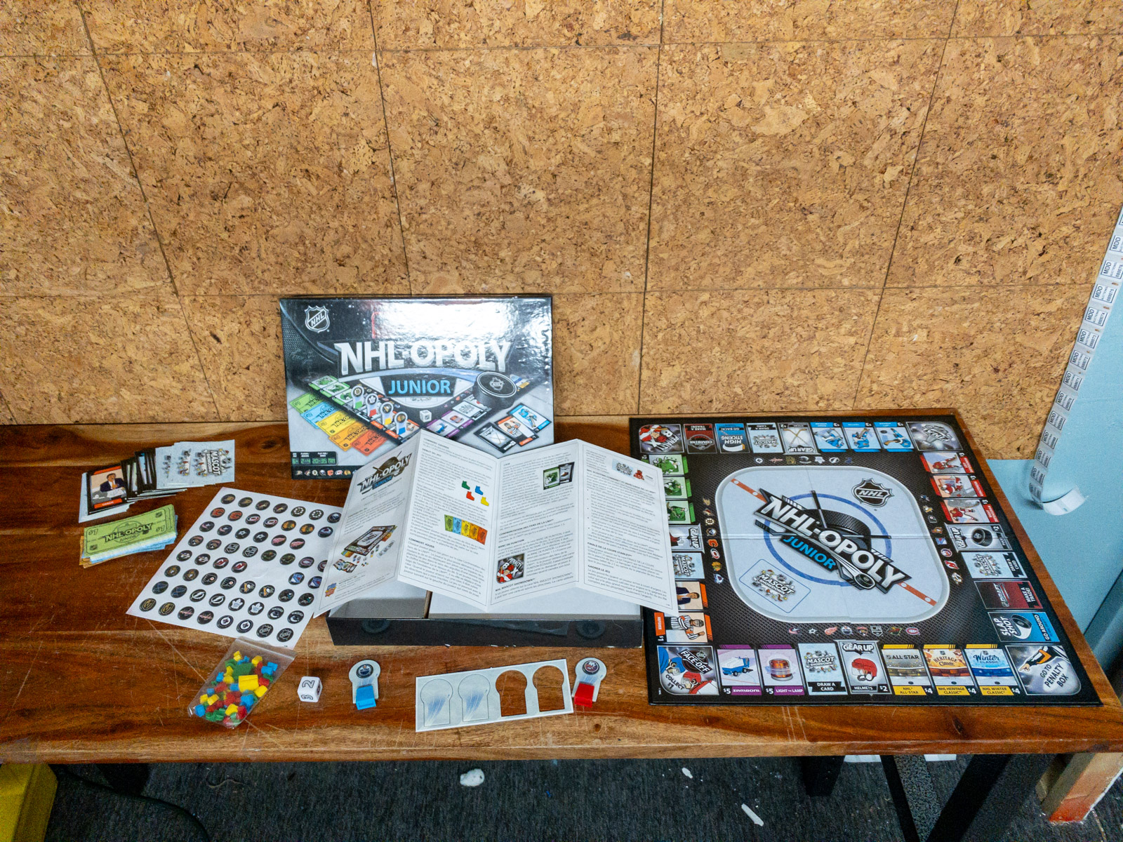 Now folks, gather 'round and feast your eyes on this beauty: the NHL-Opoly Junior Board Game! It’s hockey, it’s monopoly, it's a whole lotta fun all wrapped up in one box! This ain't your grandma's board game, this is an adventure on ice that'll have ya chargin' towards the Stanley Cup!