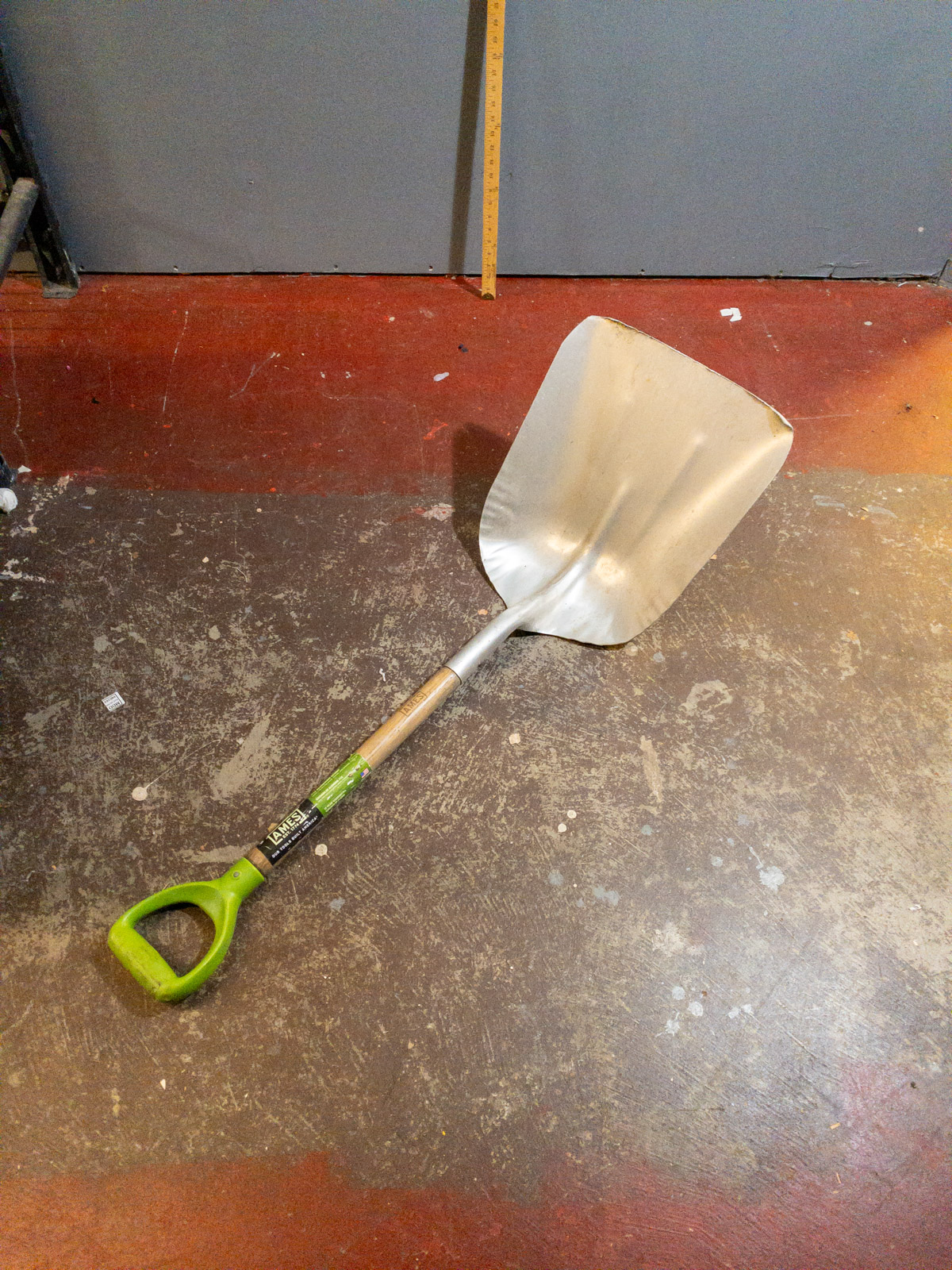 Now listen here, folks, what we've got here is a genuine Lambert scoop shovel, ready to tackle whatever you throw its way! This ain't your grandma's flimsy trowel; we're talkin' about a serious tool crafted for serious work. It's got the right angle for scooping up that gravel, dirt or even melting ice. Yessir, that Lambert shovel can even break up ice in the winter.