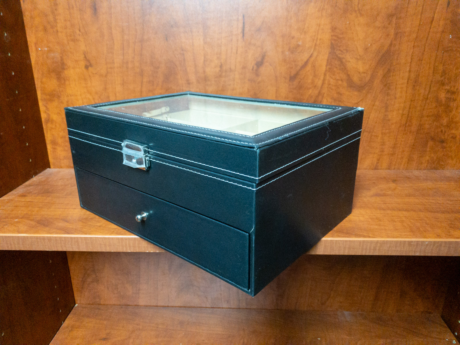 Friends, gather 'round, because this black leather jewelry box, this organizer chest, is more essential than sweet tea on a Texas summer day. It's built to last, designed to impress, and ready to bring a touch of class to your home or office! Keep them all organized, right where you know them! Perfect gift for her or him!