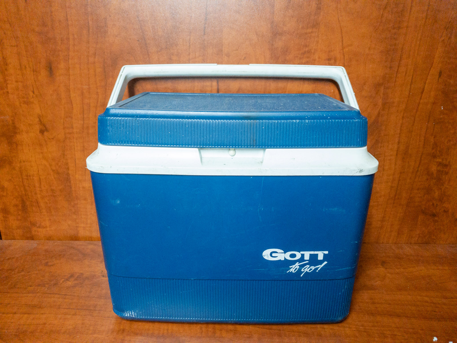Howdy folks, Bobby Bargain the Third here! Now feast your eyes on this beauty! It's a Gott 'To Go!' cooler, ready to keep your goodies colder than a polar bear's pedicure. This ice chest is perfect for picnics, tailgating, campin', or just keepin' things frosty on a hot summer day.