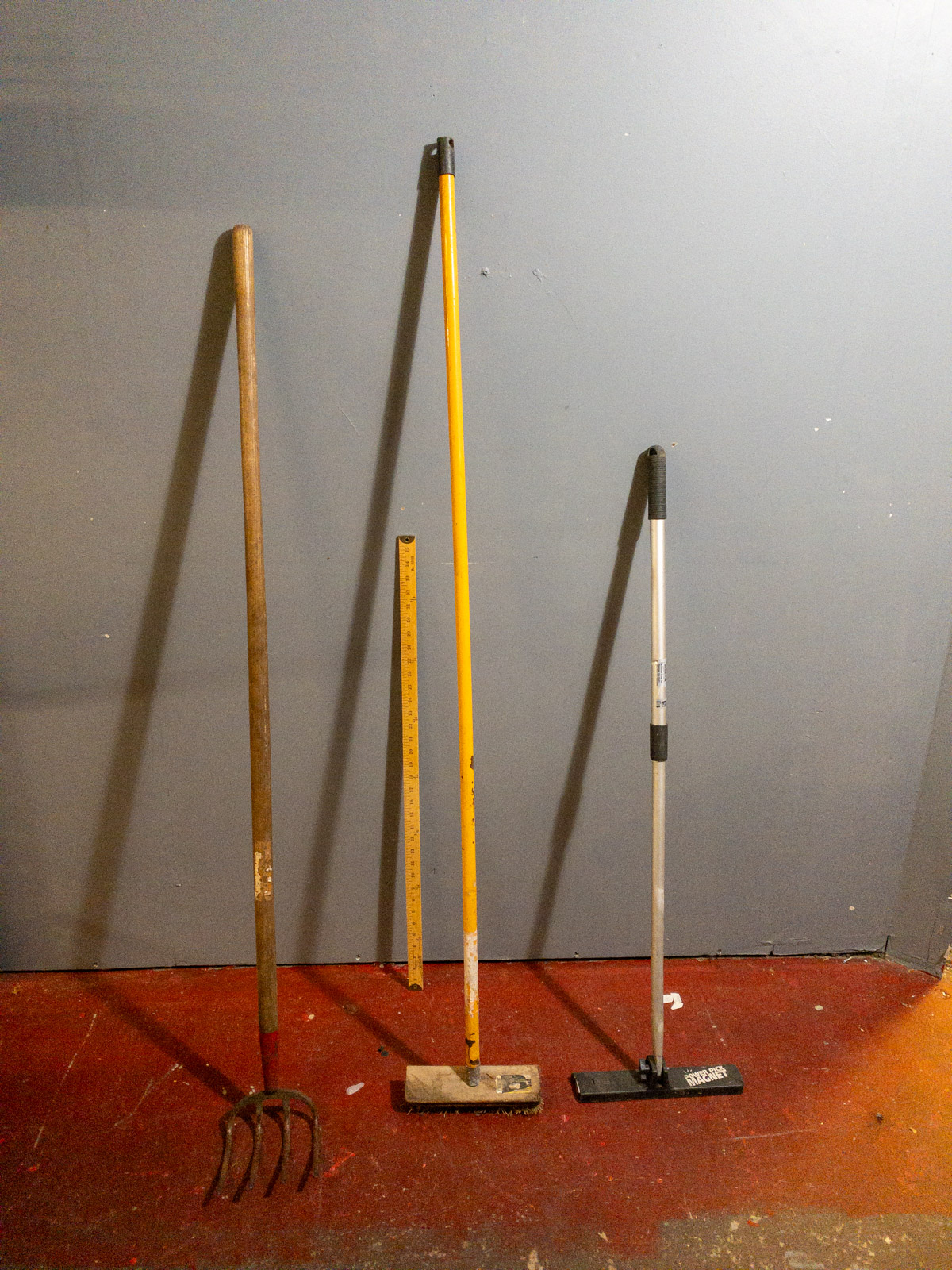 And what's this next, friends? It's a broom and a magnet sweep with the name of "POWER PICK MAGNET" on it. Now, this broom is as industrious as a honeybee on a bluebonnet, ready to sweep up anything life throws at it! And that POWER PICK MAGNET sweep? Stronger than a bull's stubborn streak, this magnet sweeper will rid your property of every last stray nail and screw! Who's gonna be the lucky fella to snag this lot?