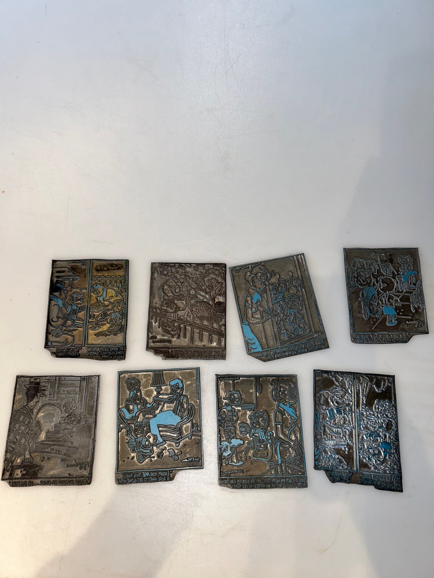 8 Antique Comic Strip Metal Block Original Plates