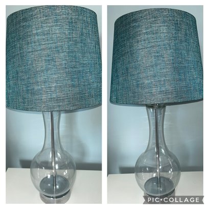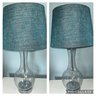 Pair Of Glass Table Lamps With Teal Shades