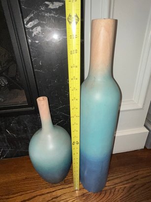 Pair Of Teal Vases Wood