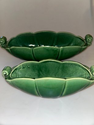 Pair Of Vintage McCoy Pottery Scalloped Green Planters