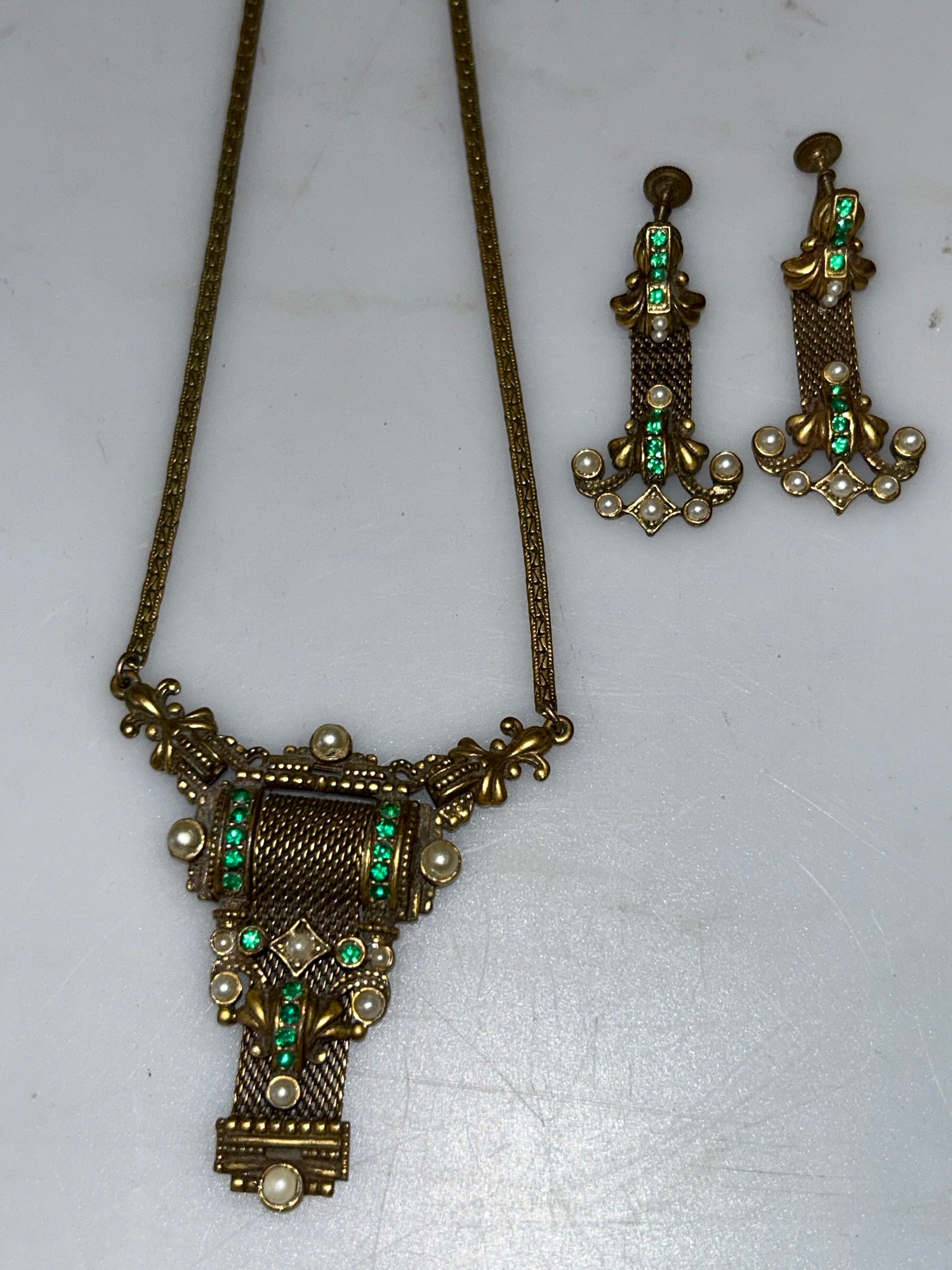 Antique Victorian Fleur De Lis Necklace & Earrings