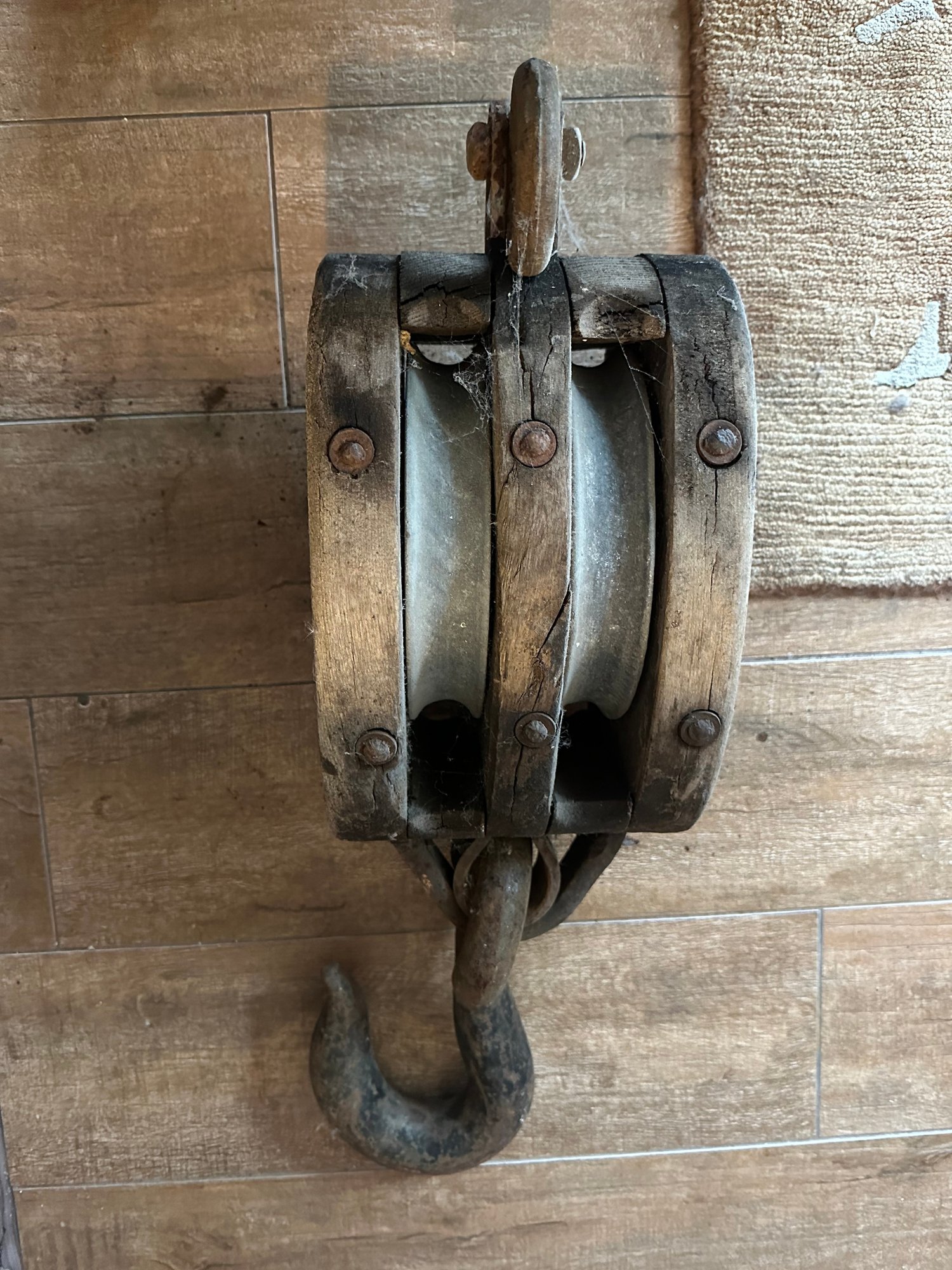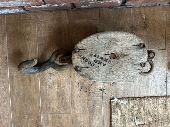 Antique Wooden Block And Tackle Pulley