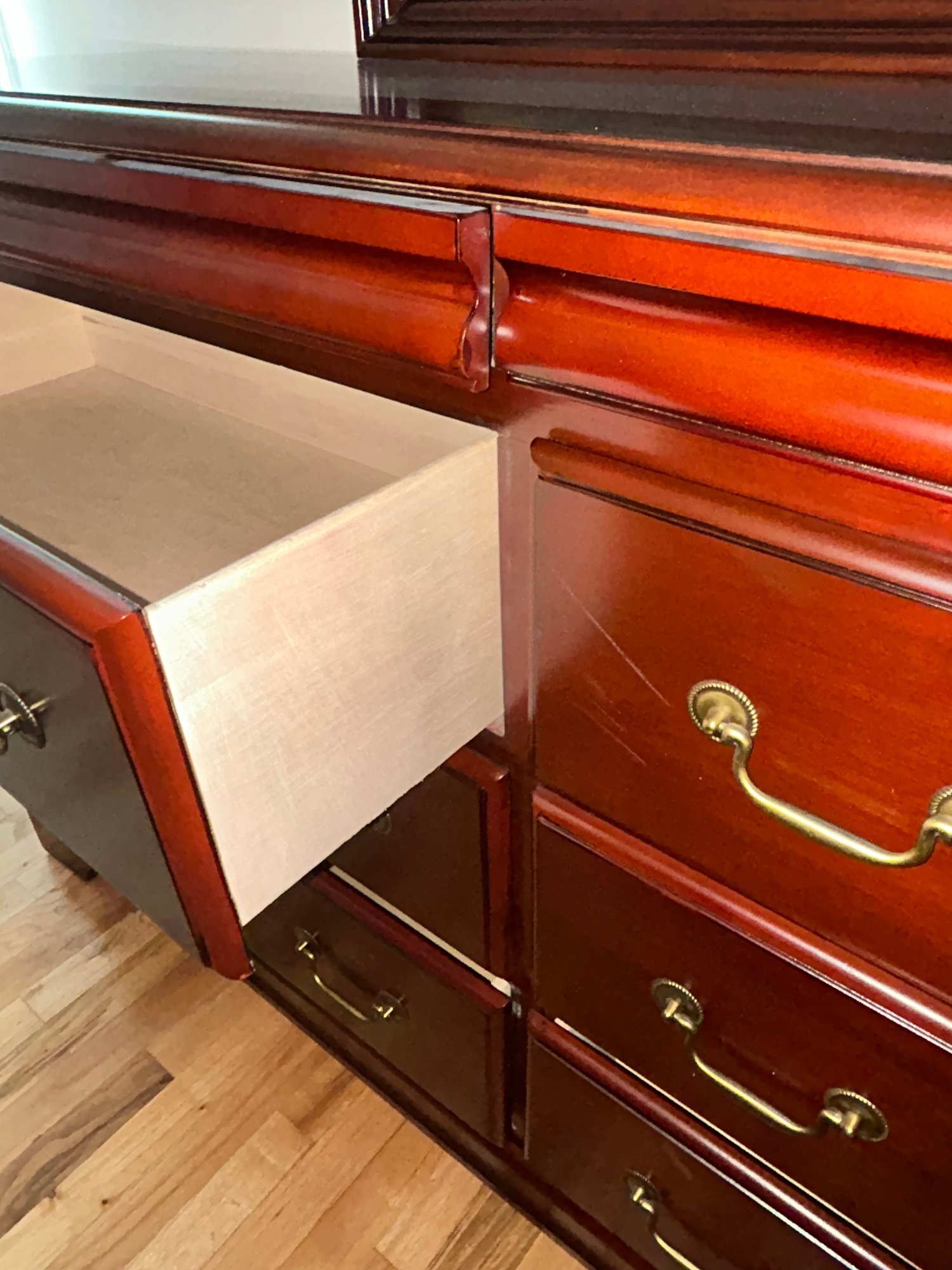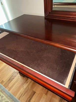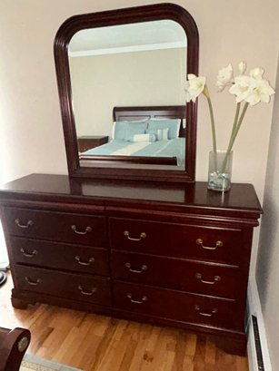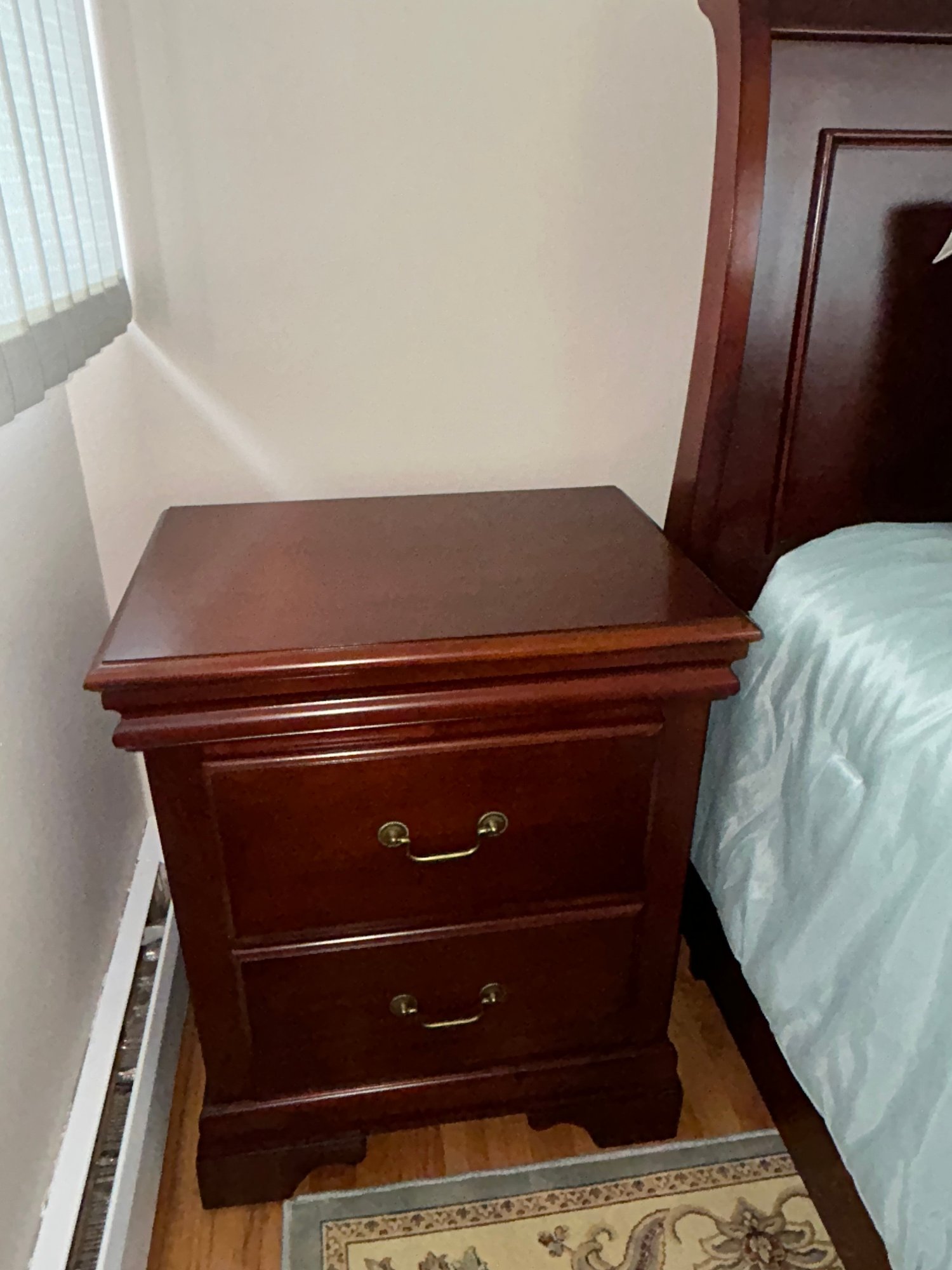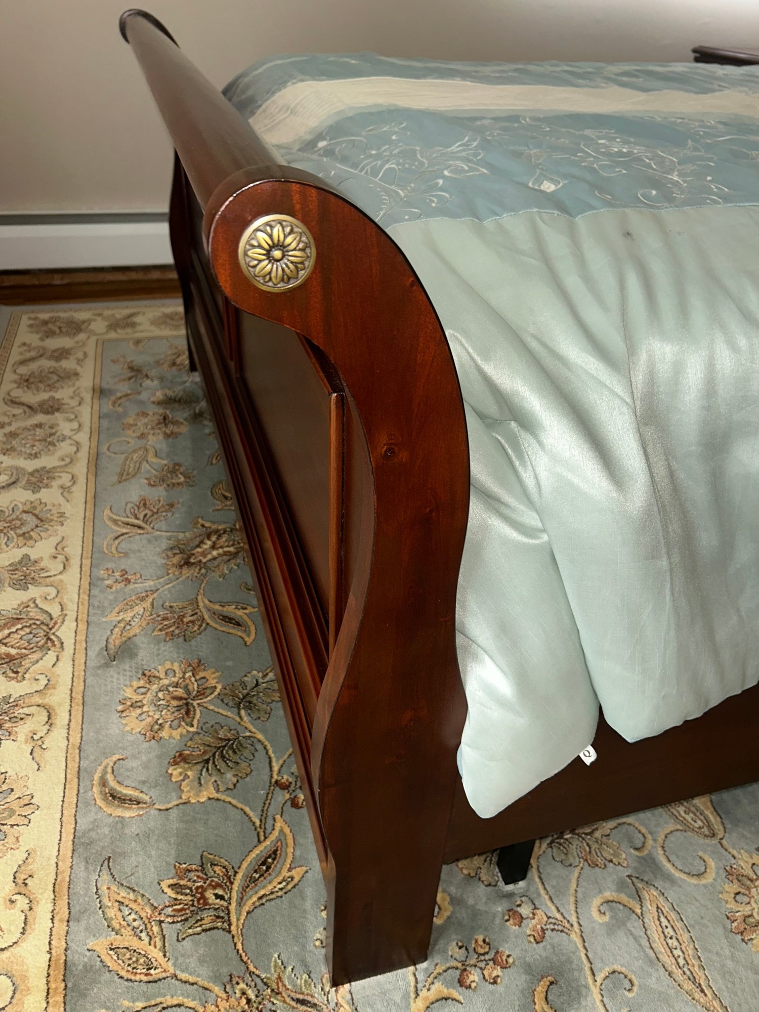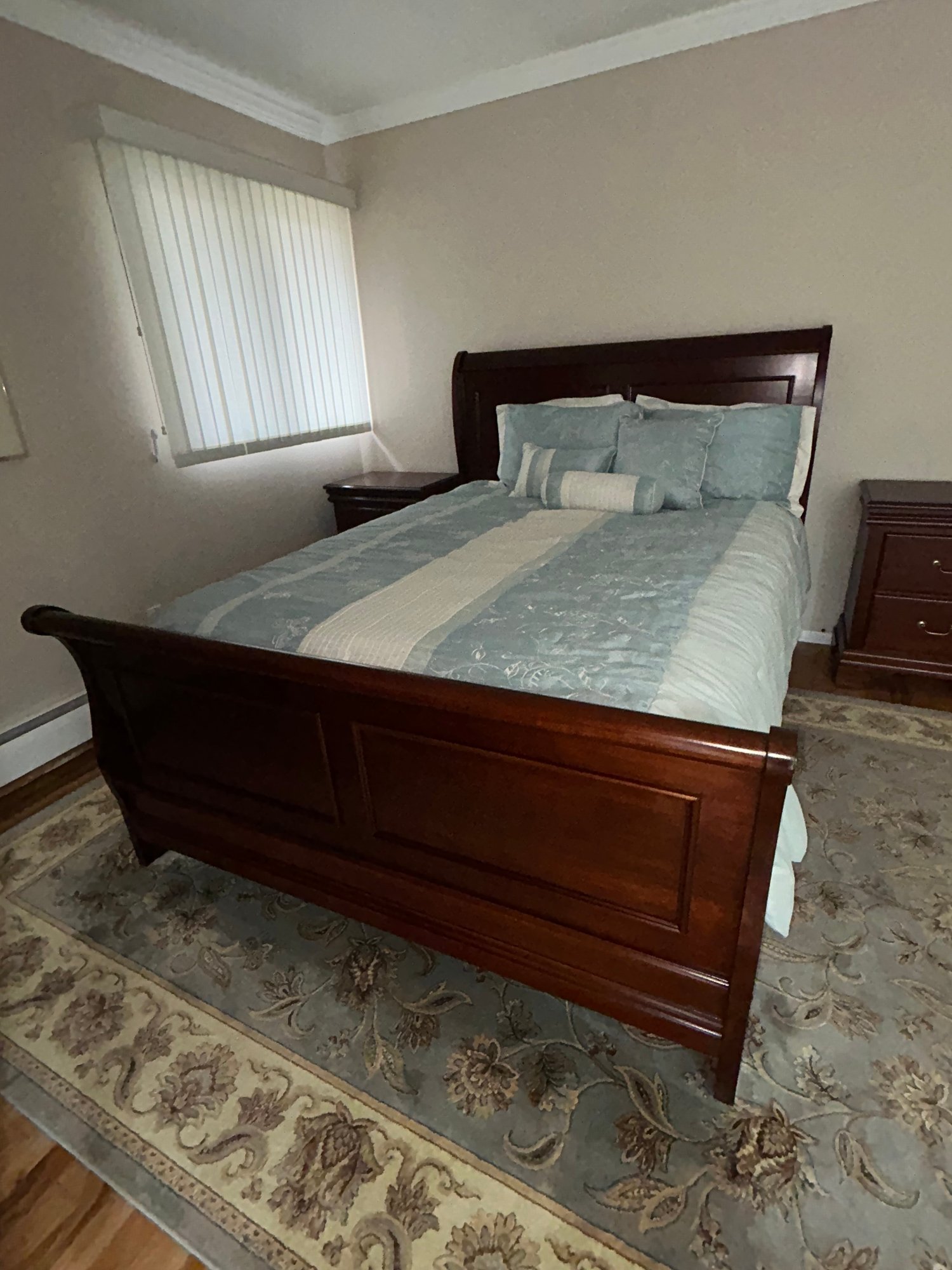 Like new. Includes queen sleigh bed, dresser, mirror, 2 night tables