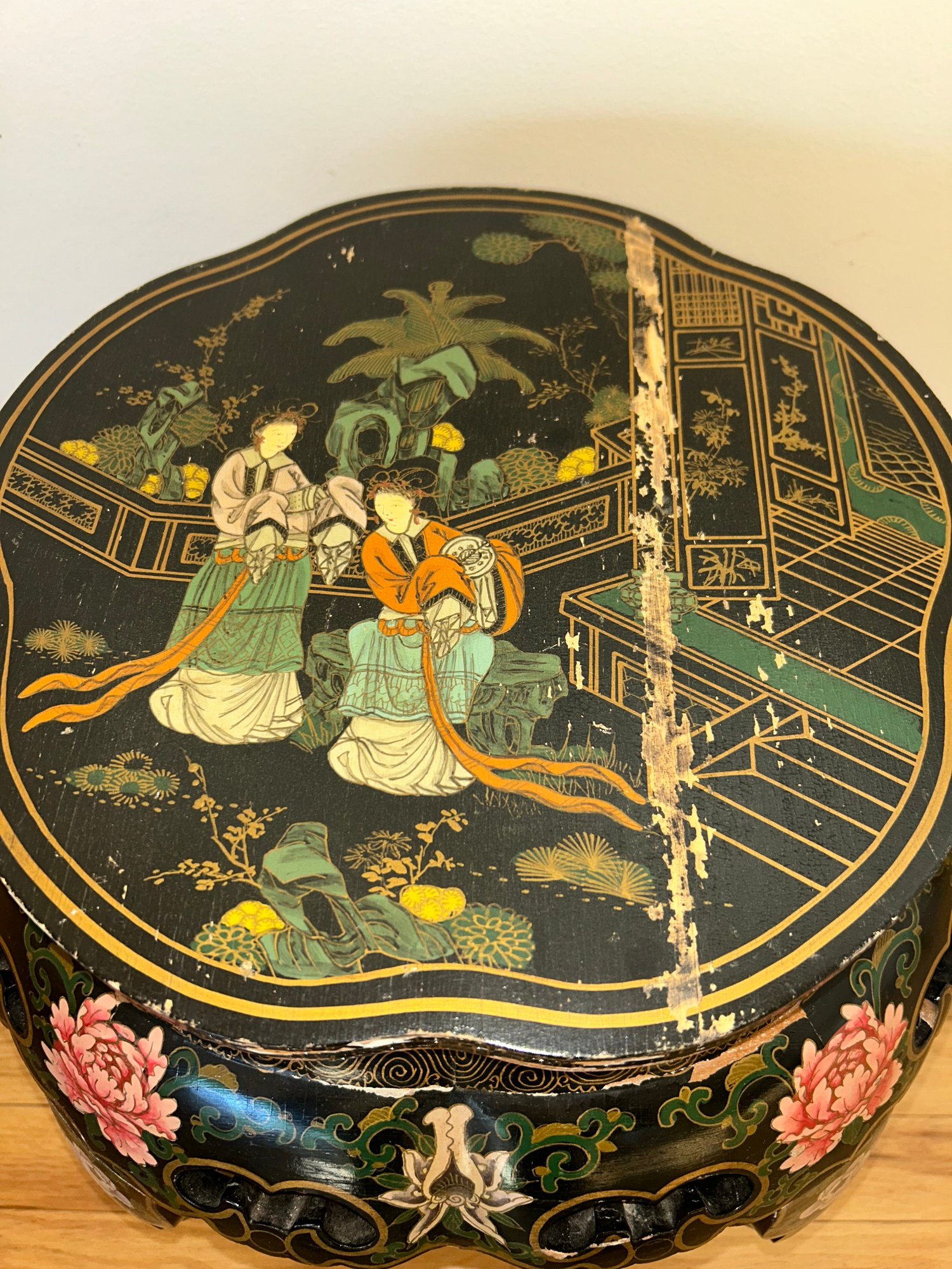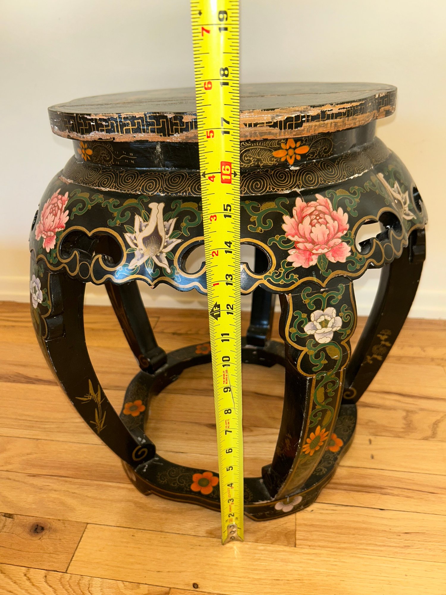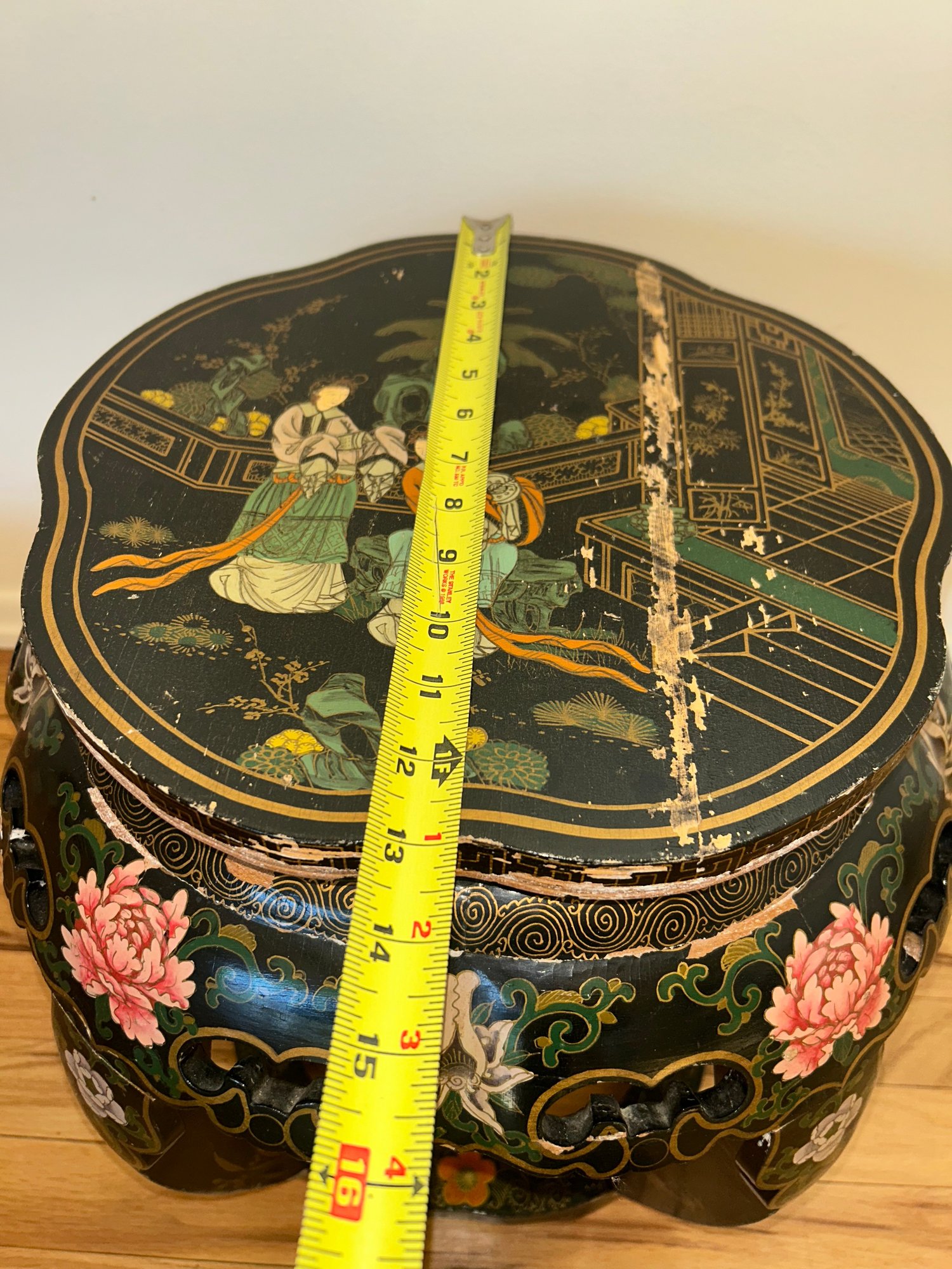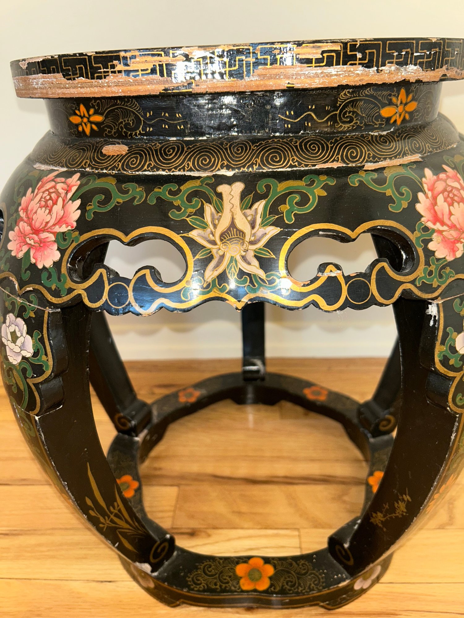 Chinese Black Lacquer Chinoiserie Drum Stool.