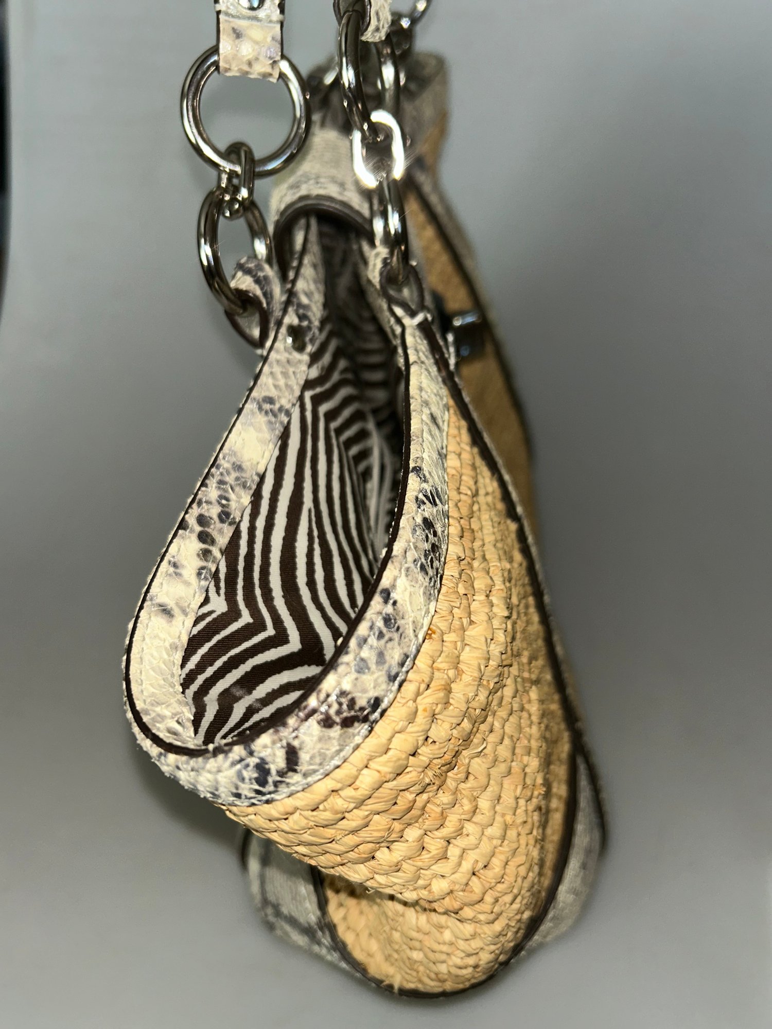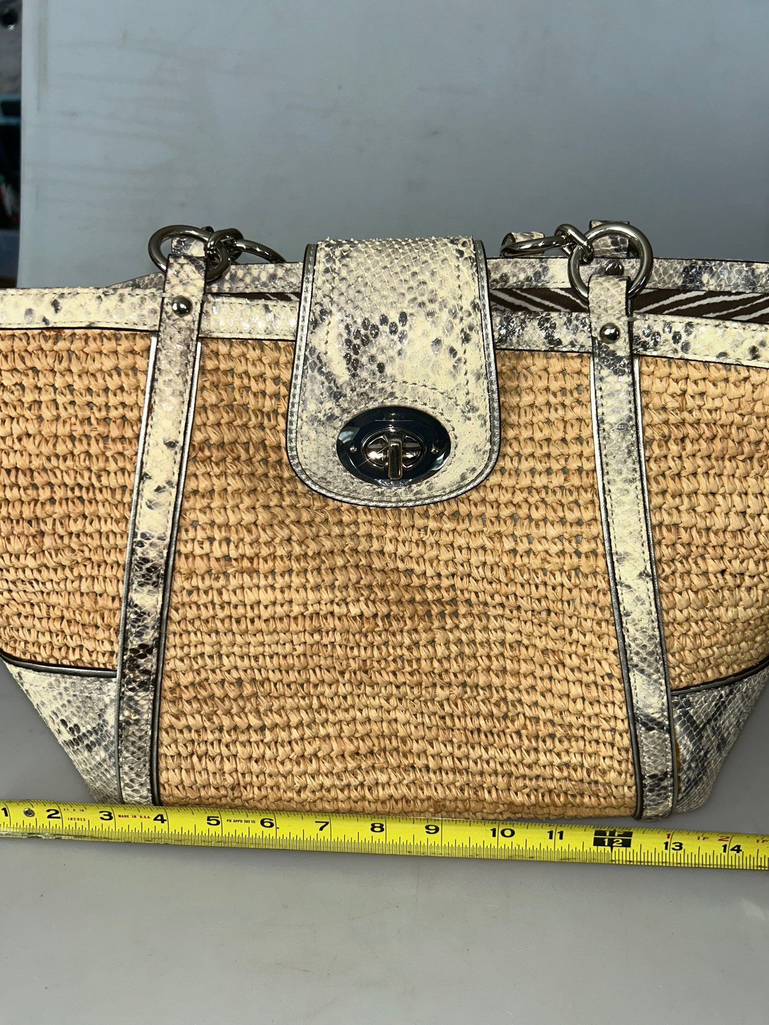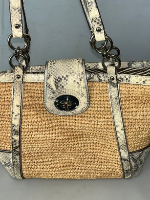 Coach Hampton Python Straw Turn Lock Tote Bag