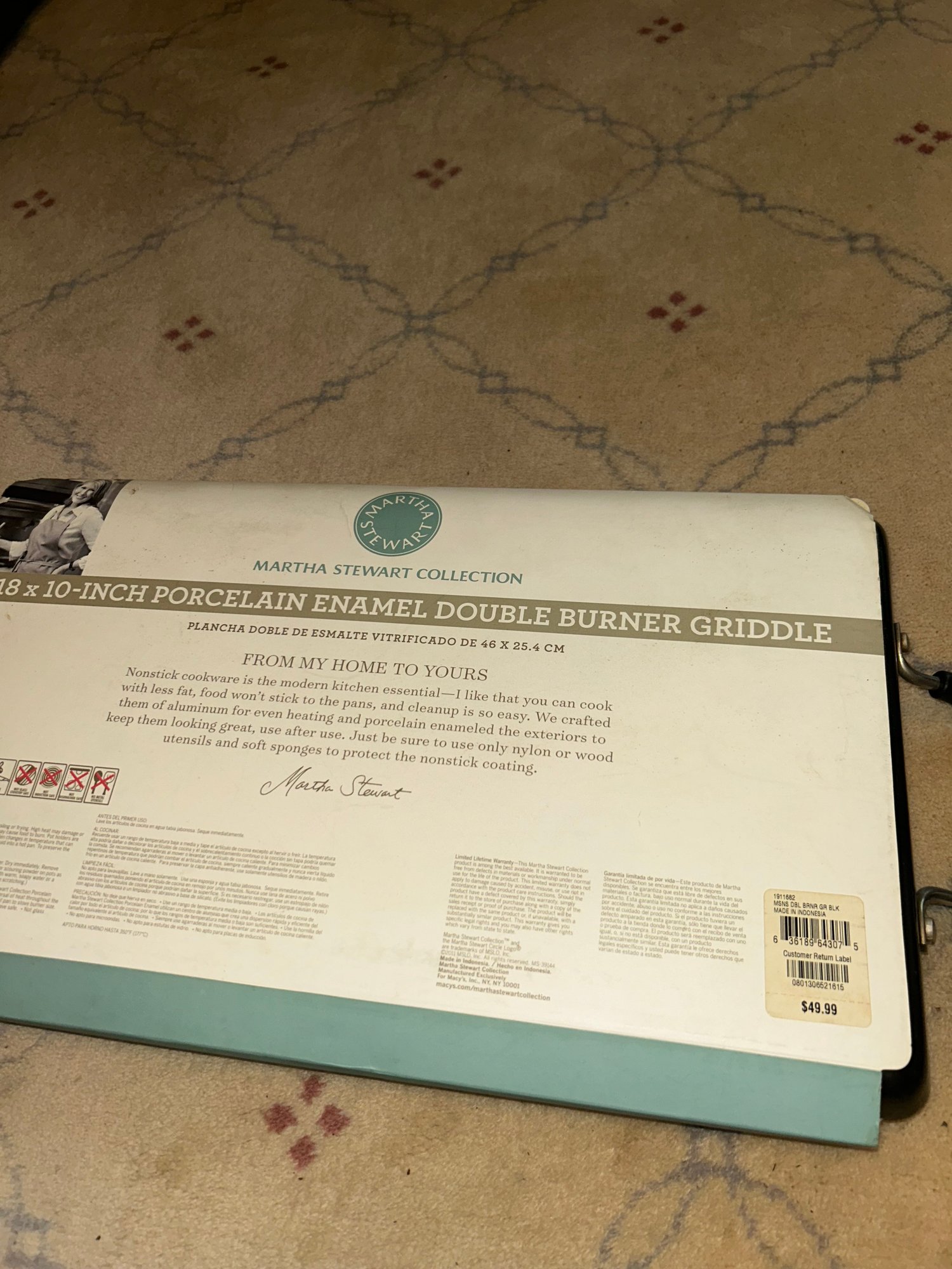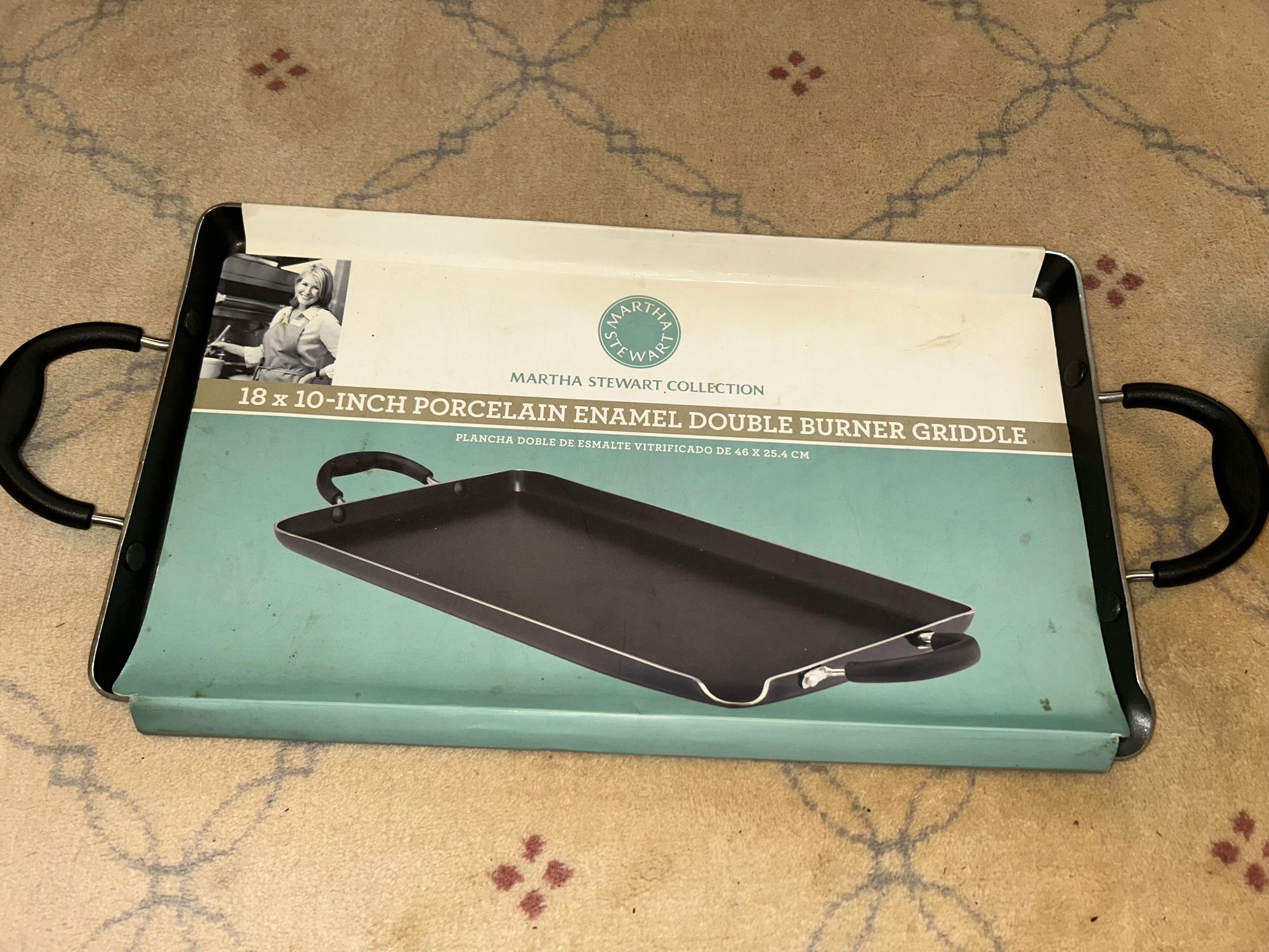 New MARTHA STEWART, COLLECTION 18 X 10-INCH PORCELAIN ENAMEL DOUBLE BURNER GRIDDLE