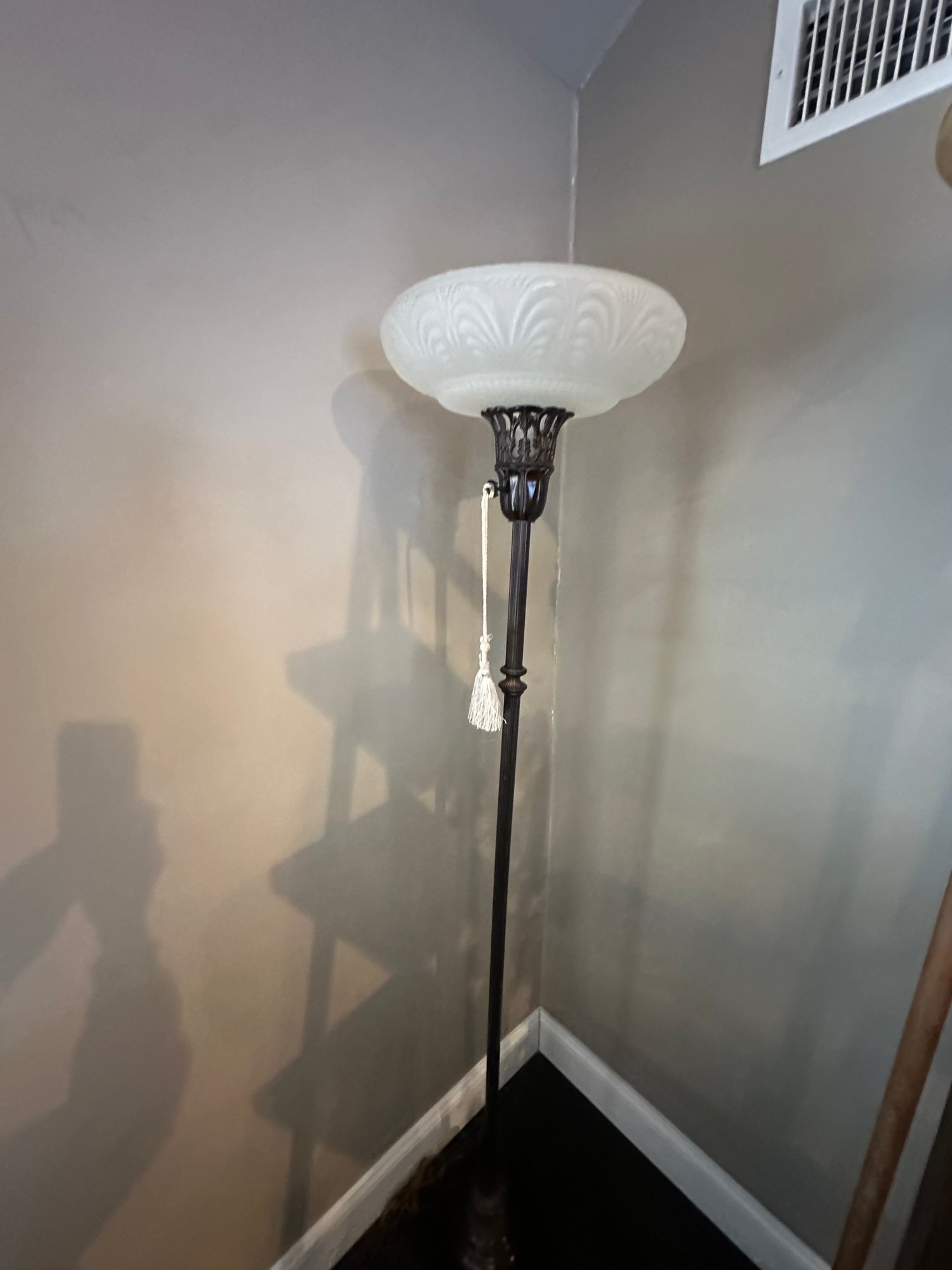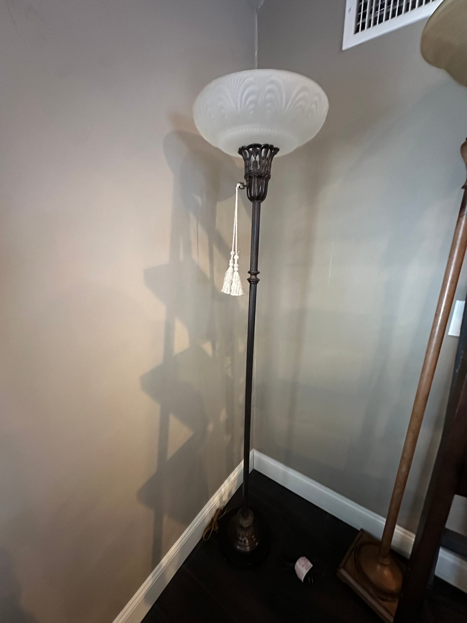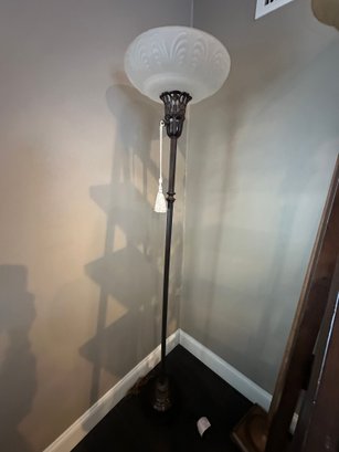 Floor Lamp With Glass Shade, Ornate Metal Base