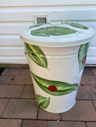 Hand Painted Ladybug On Leaf Trash Can