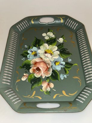 Hand Painted Metal Serving Tray Floral