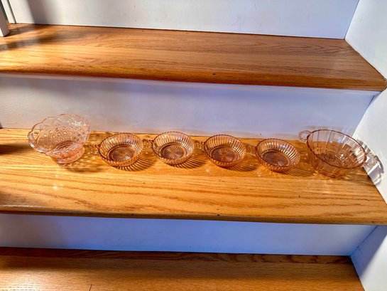 Pink Depression Glass Handled Fruit Bowls, Compote Bowls