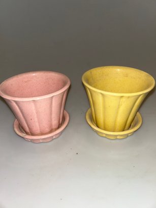 Pink & Yellow McCoy Ribbed Flower Pots