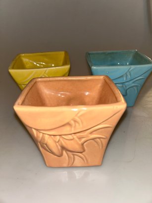 McCoy Pottery Pink, Yellow & Blue Tapered Square Planter/jardiniere In The Lily Bud Pattern