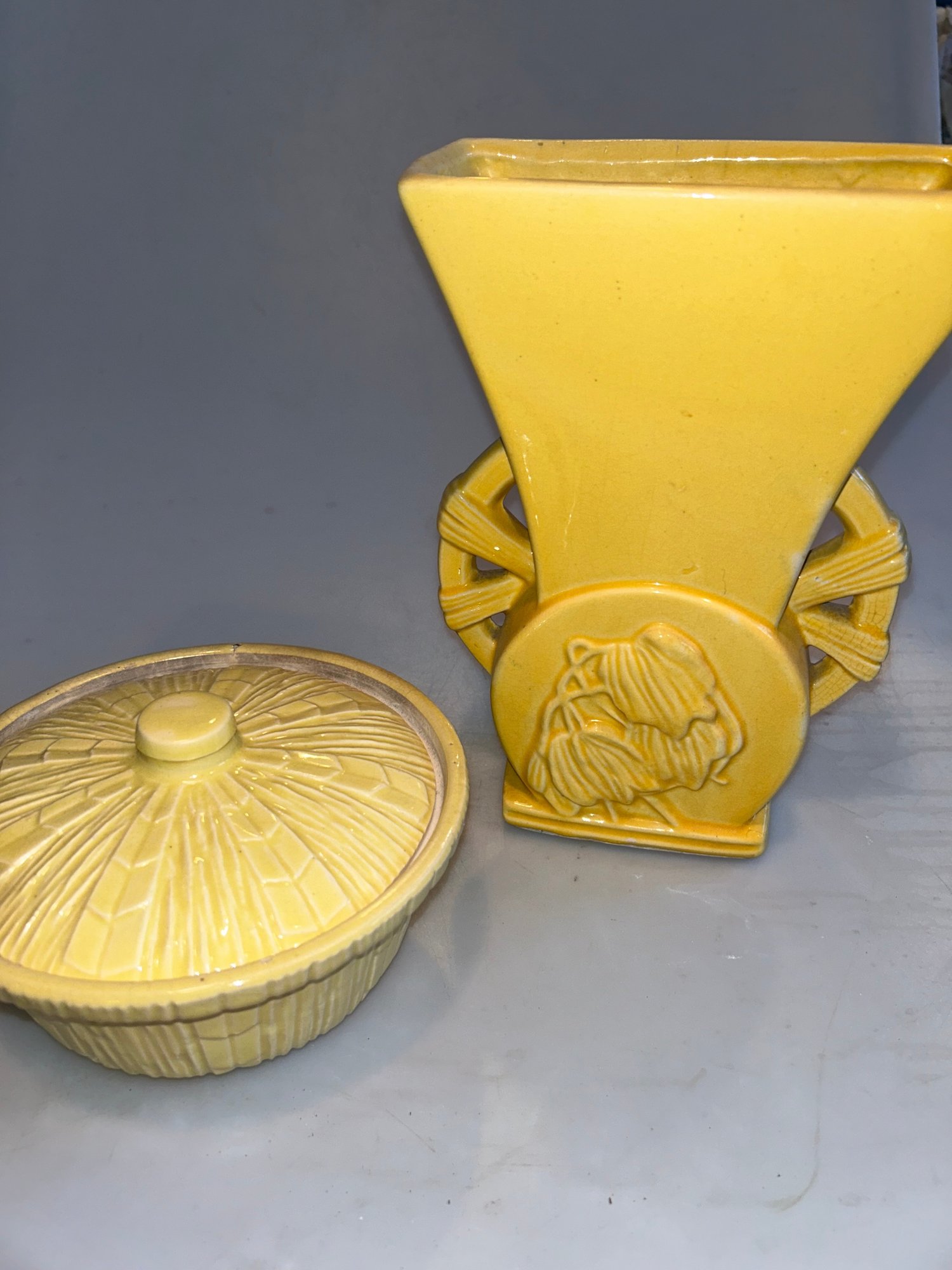 McCoy Yellow Vase & Covered Bowl