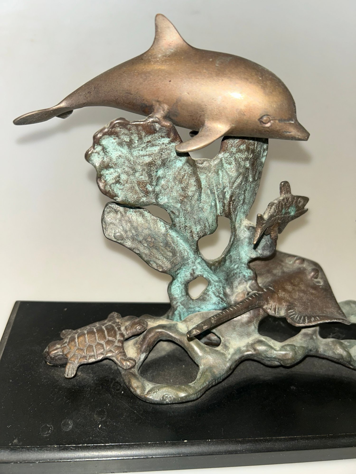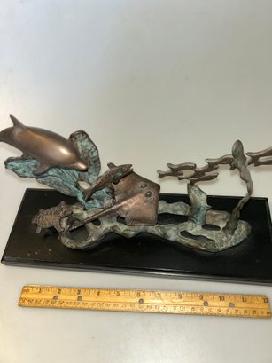 San Pacific International Bronze Ocean Sea Sculpture Dolphin Turtle StingRay Fish