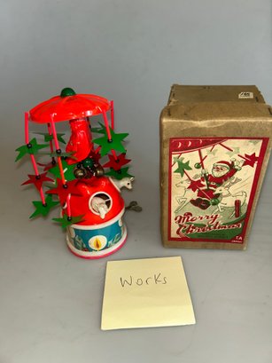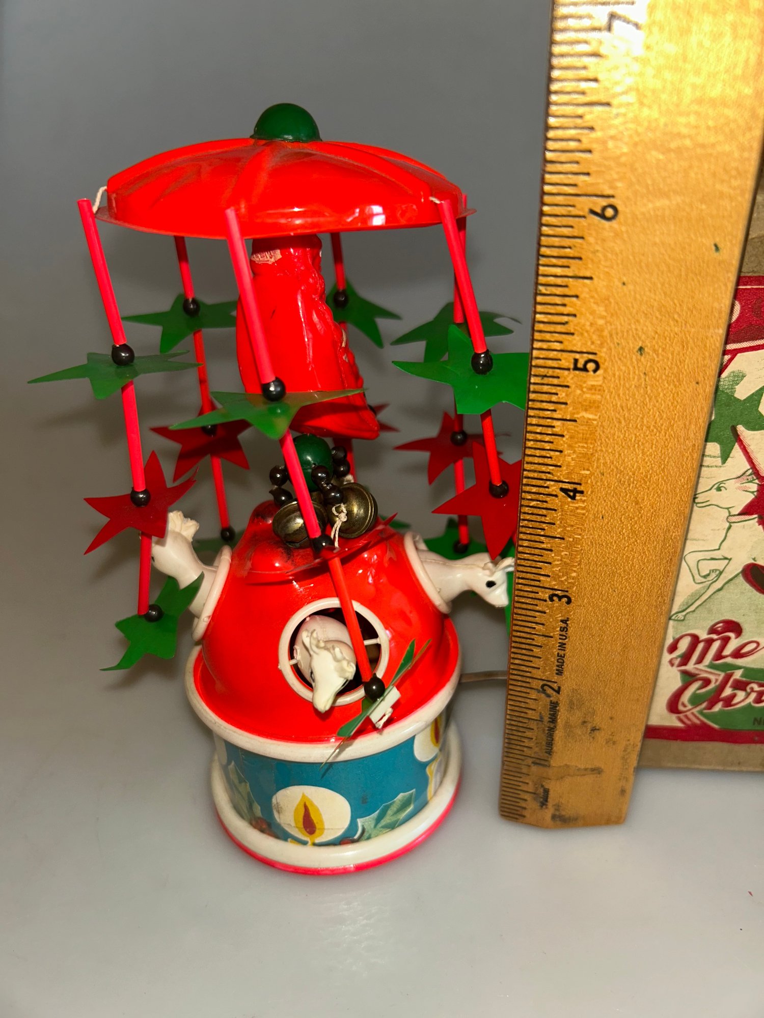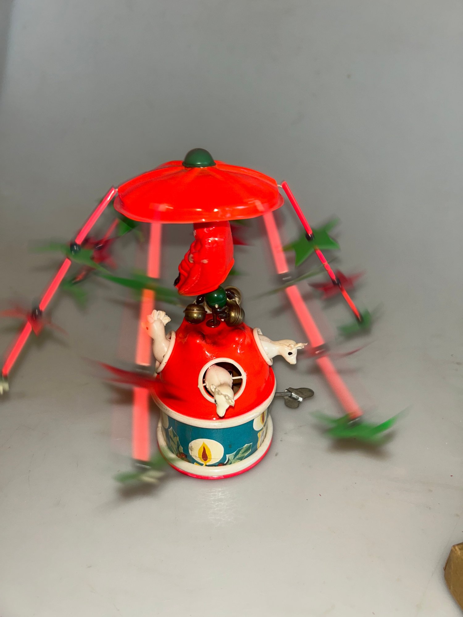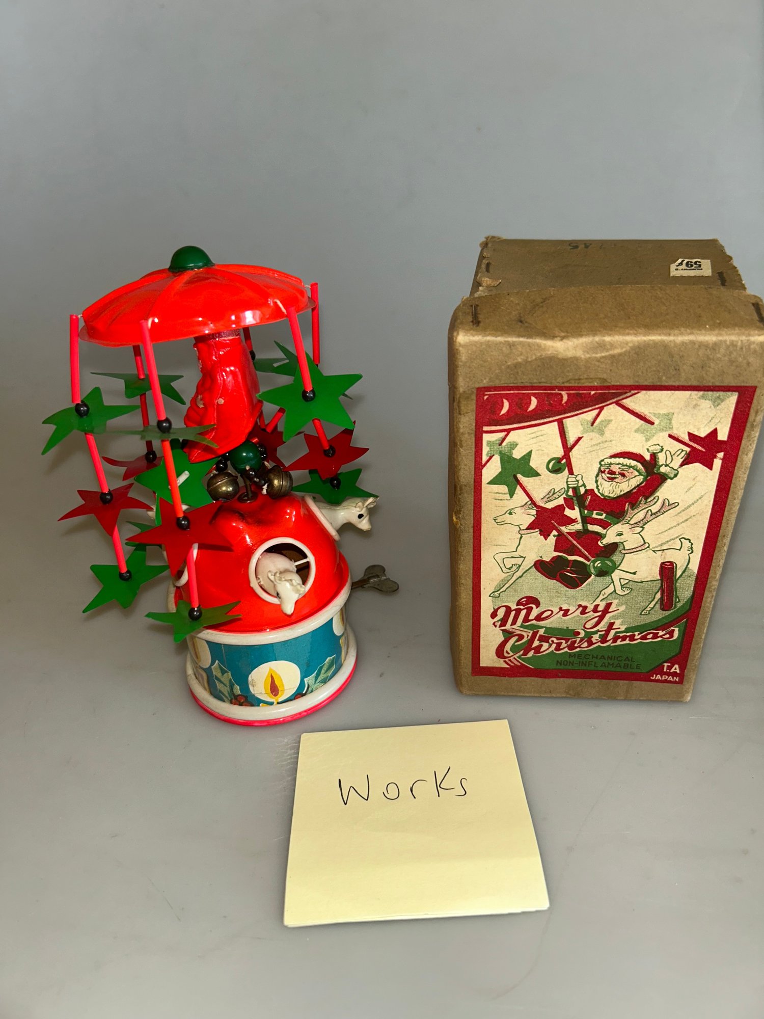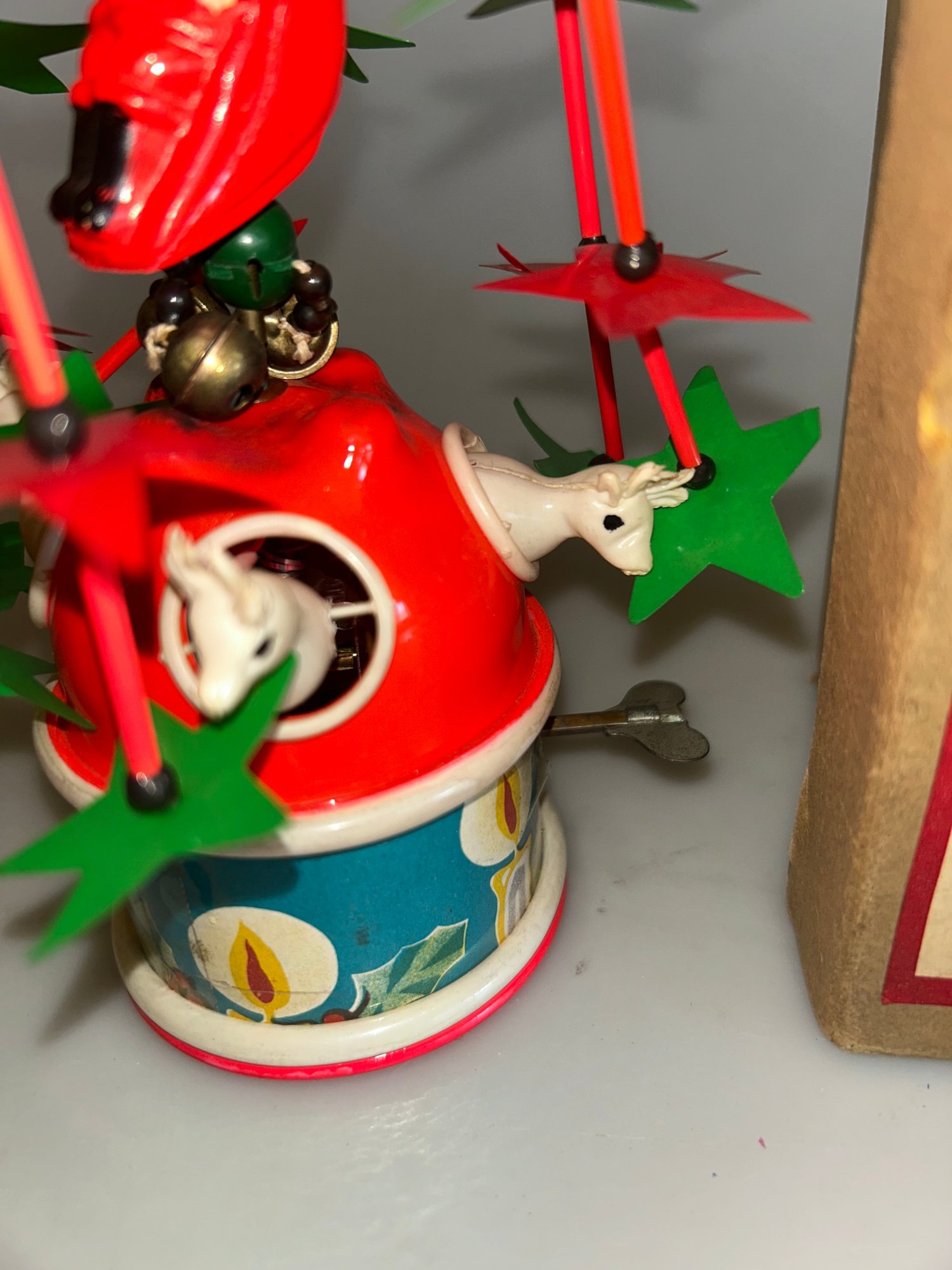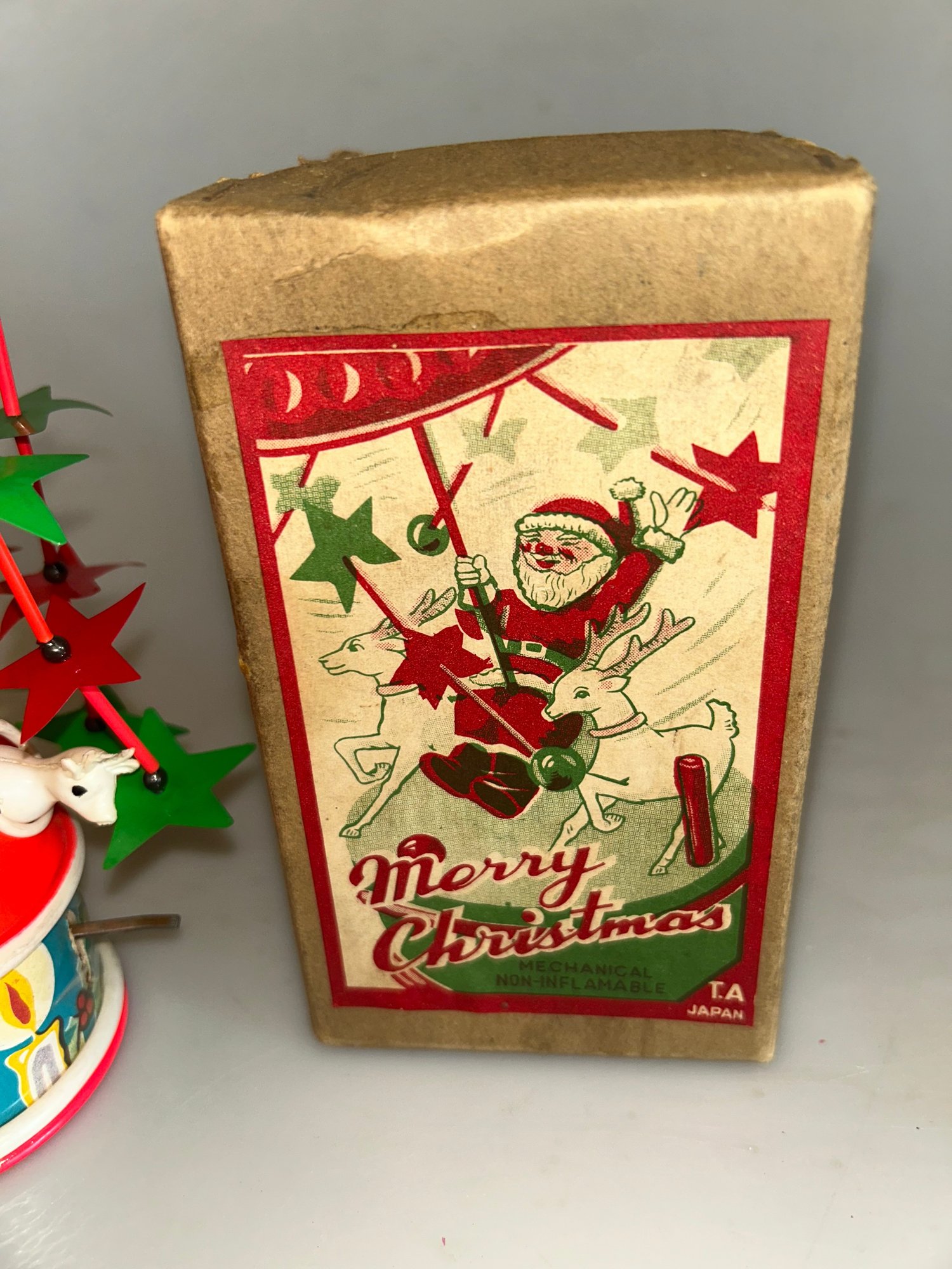 SANTA CLAUS & REINDEER CELLULOID WIND UP TOY 1930s JAPAN WORKS