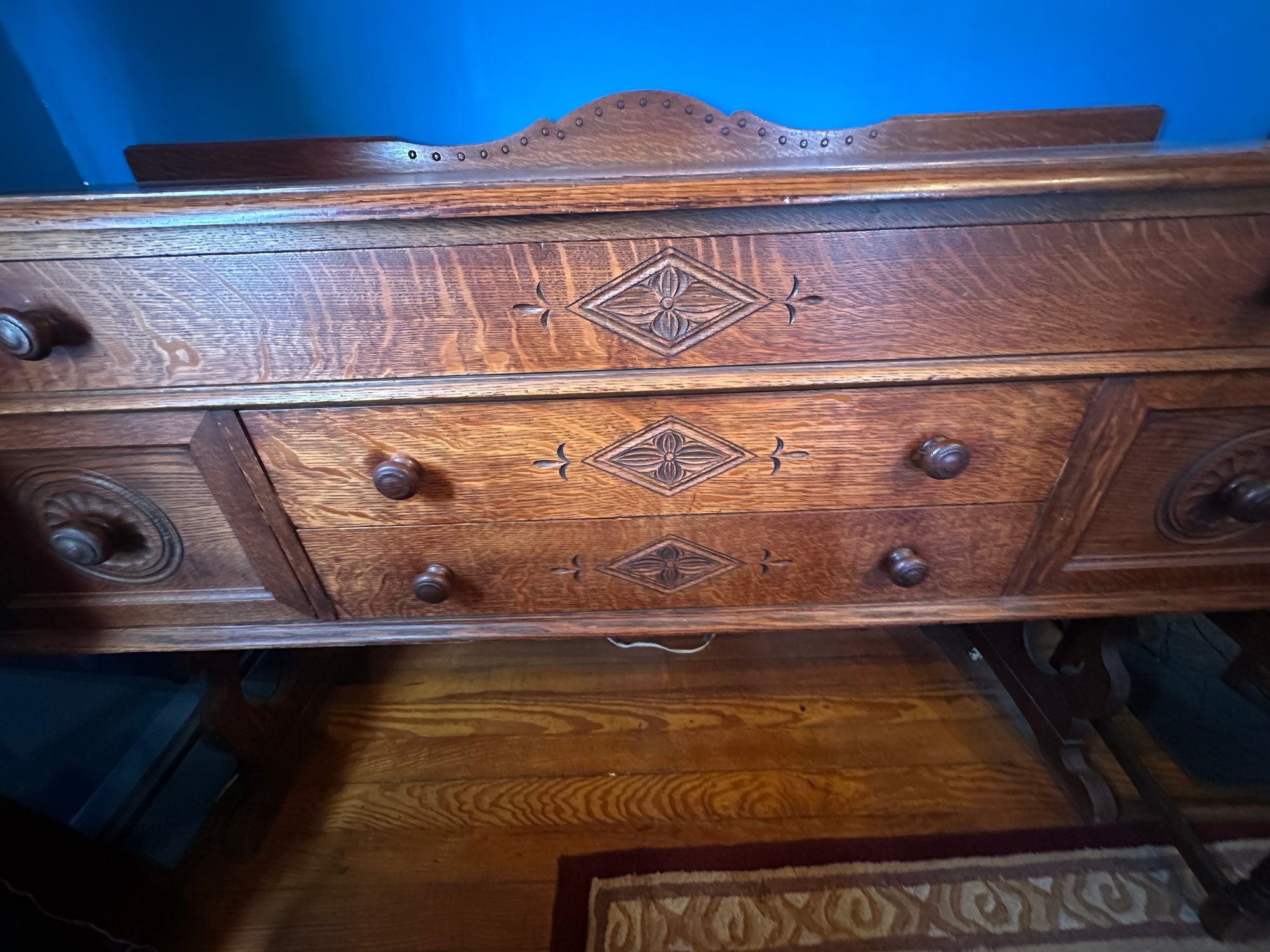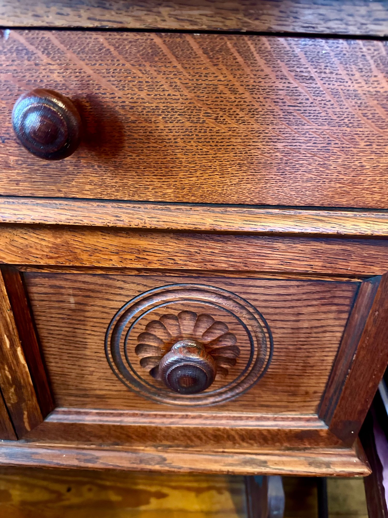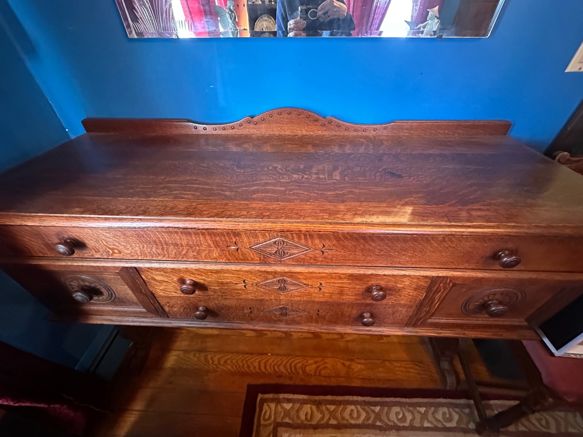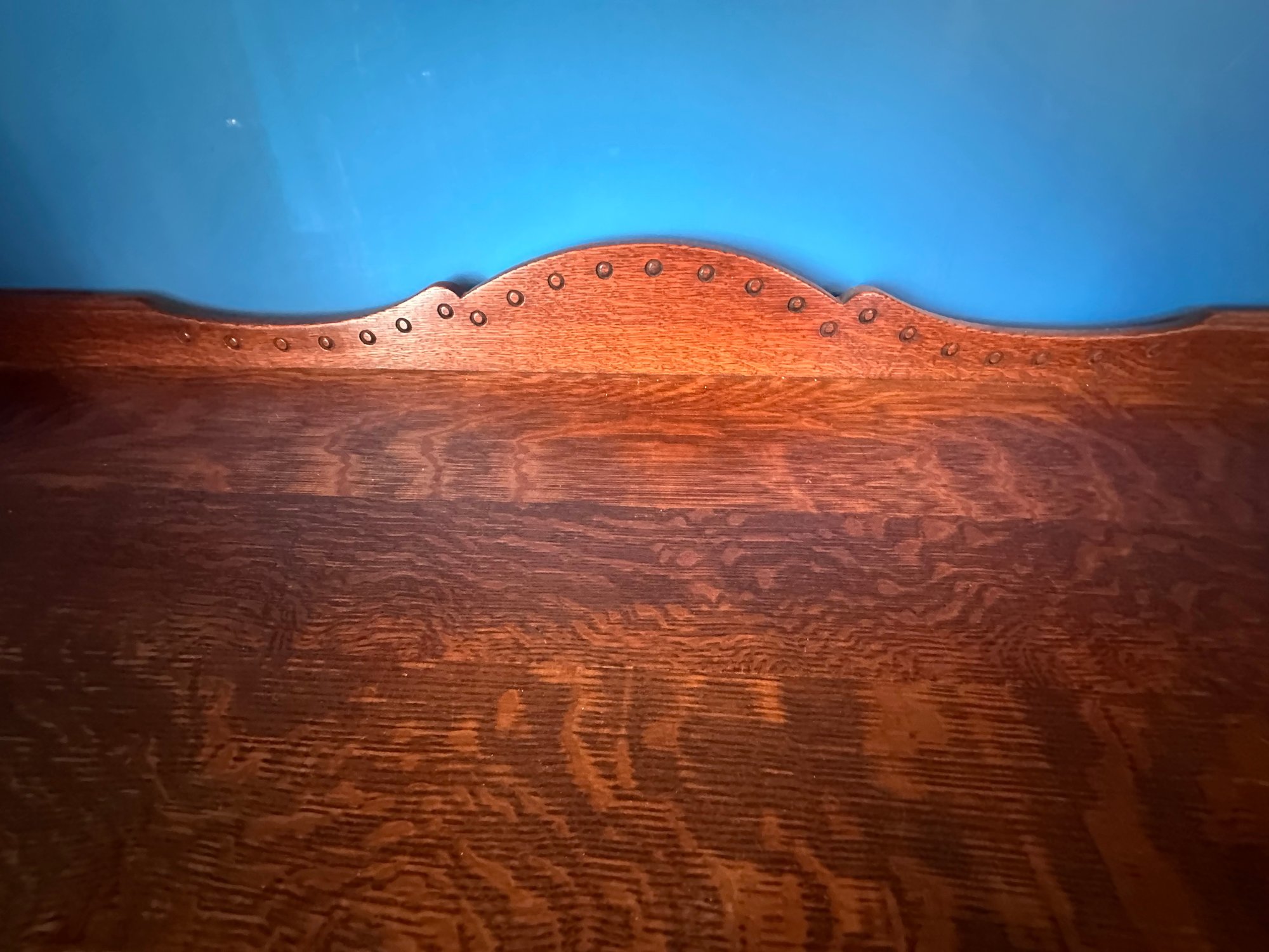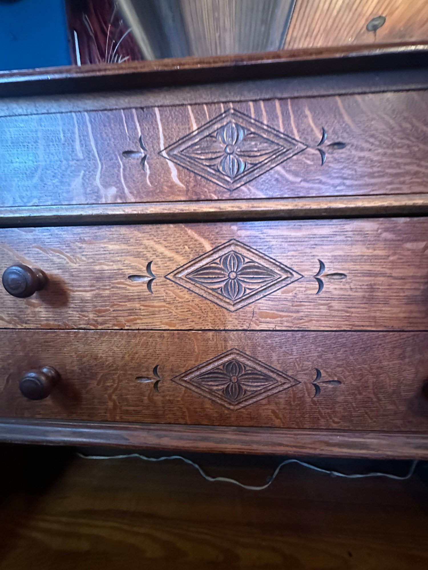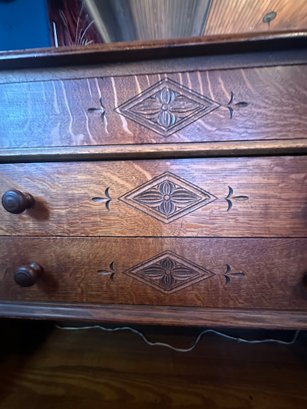 Decorative diamond-shaped inlays and brass hardware, beautiful condition