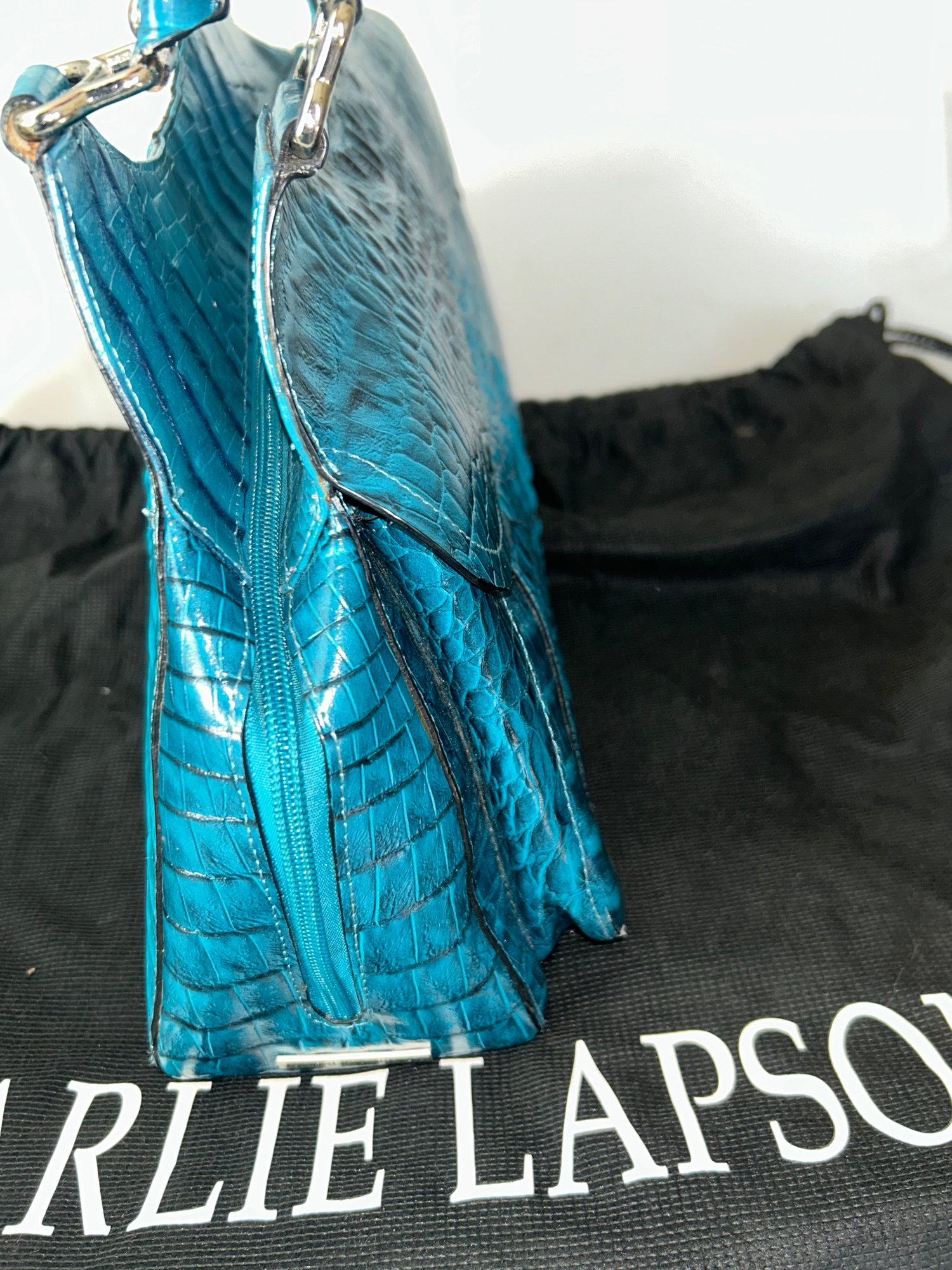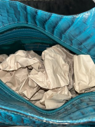 Turquoise Crocodile-embossed Leather Shoulder Bag Is By Charlie Lapson