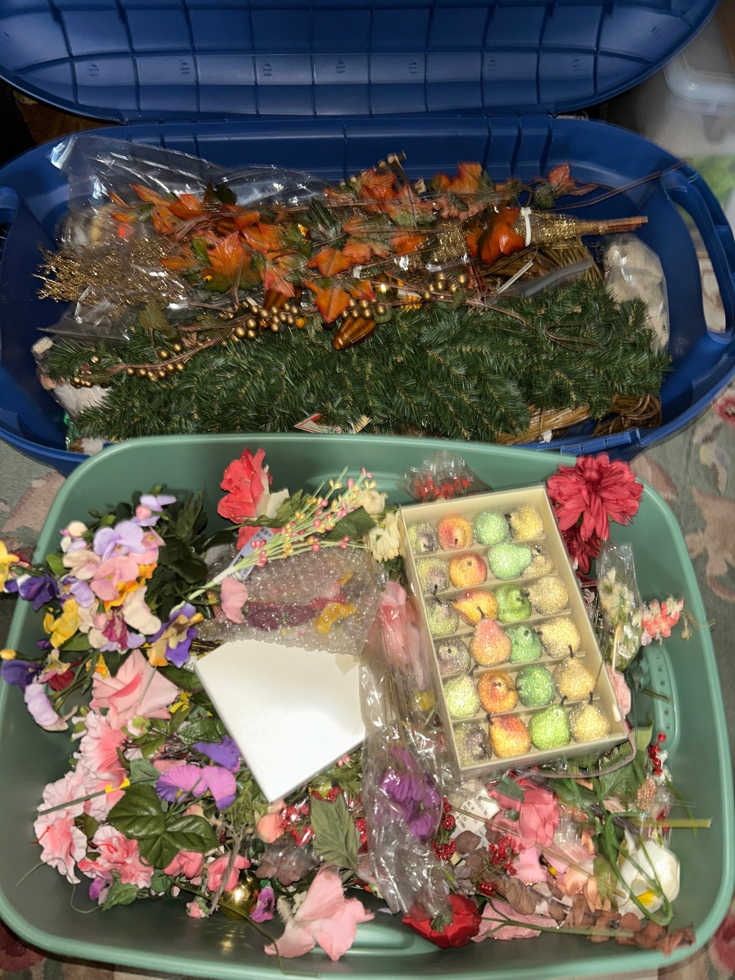 Two Large Storage Bins Full Of Floral