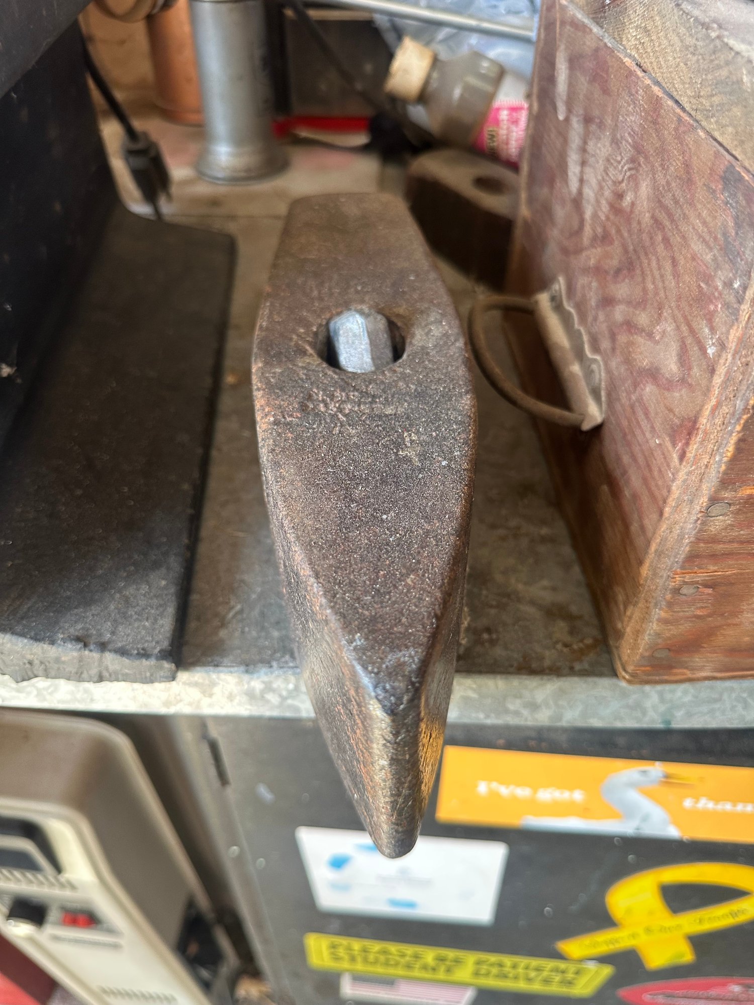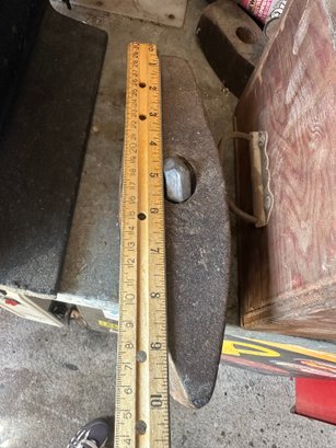 It features a heavy metal head with a sharp, chisel-like end designed for driving or removing rail spikes. These tools were commonly forged from steel and are prized by collectors of blacksmithing and antique railroad tools.