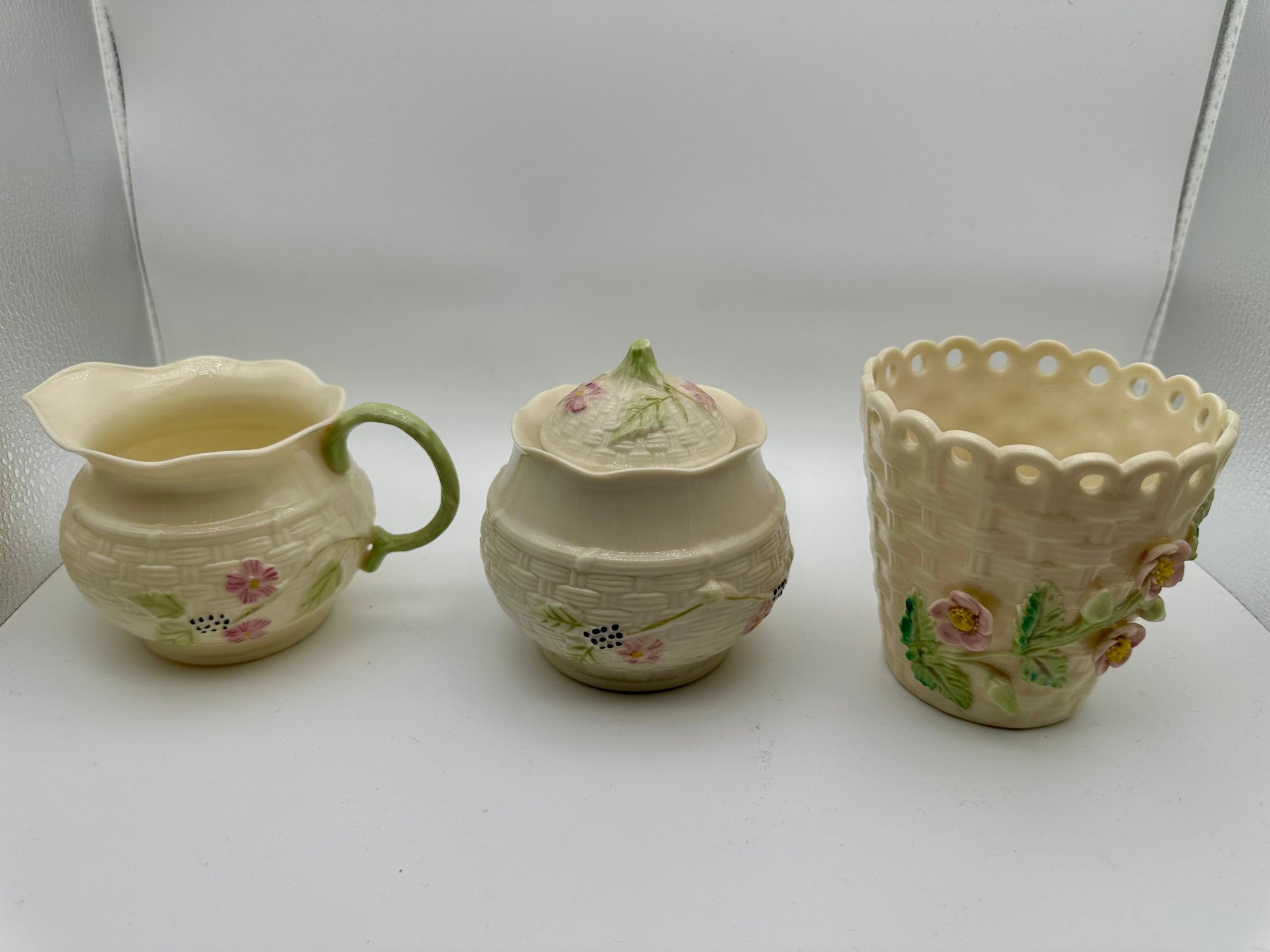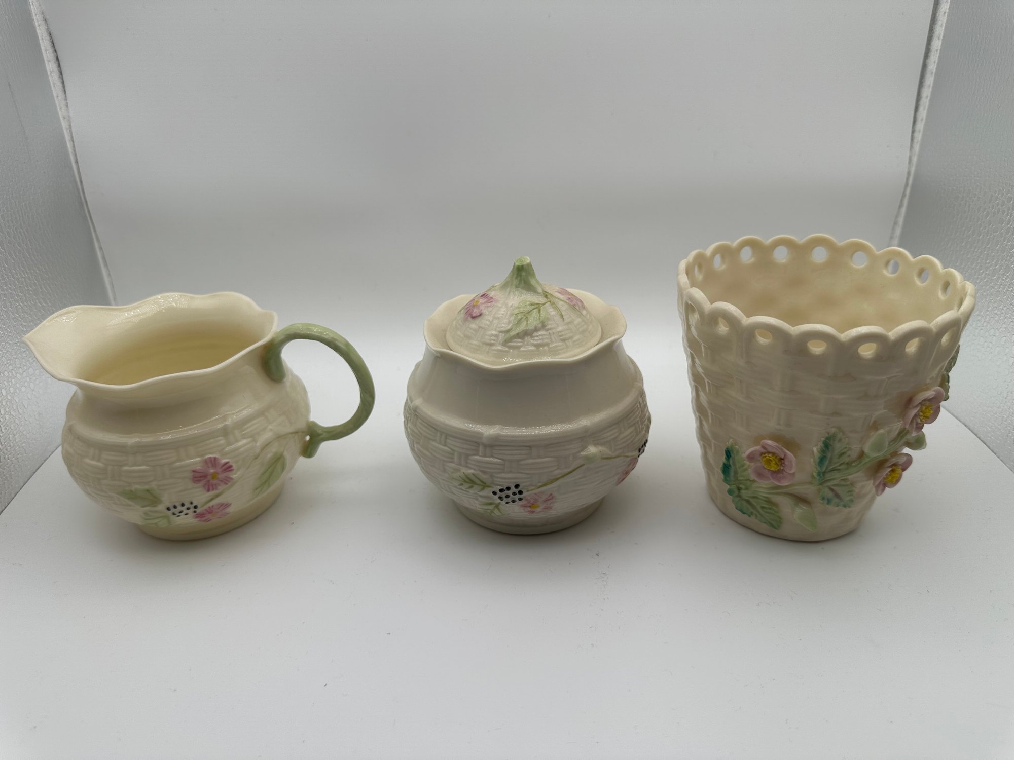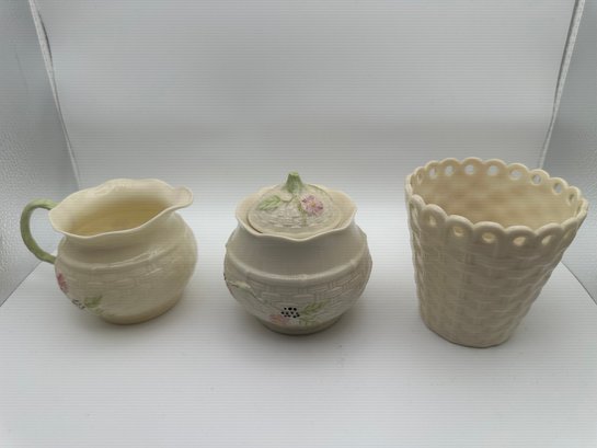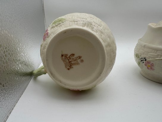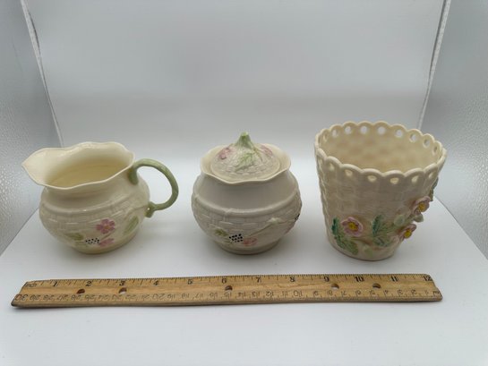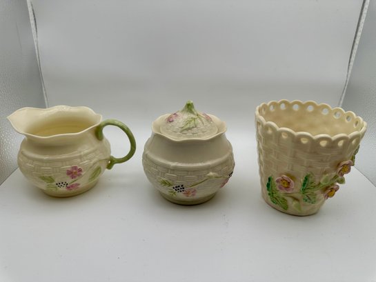 Vintage Belleek Creamer, Sugar Bowl, Small Vase