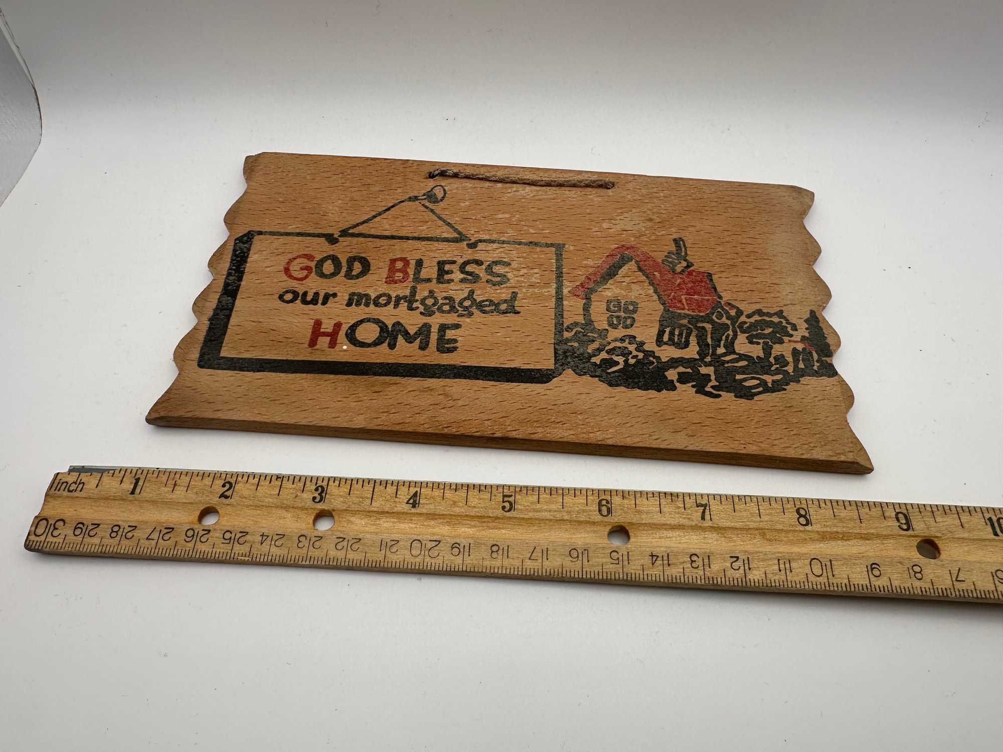 Vintage "God Bless Our Mortgaged Home" Wooden Postcard