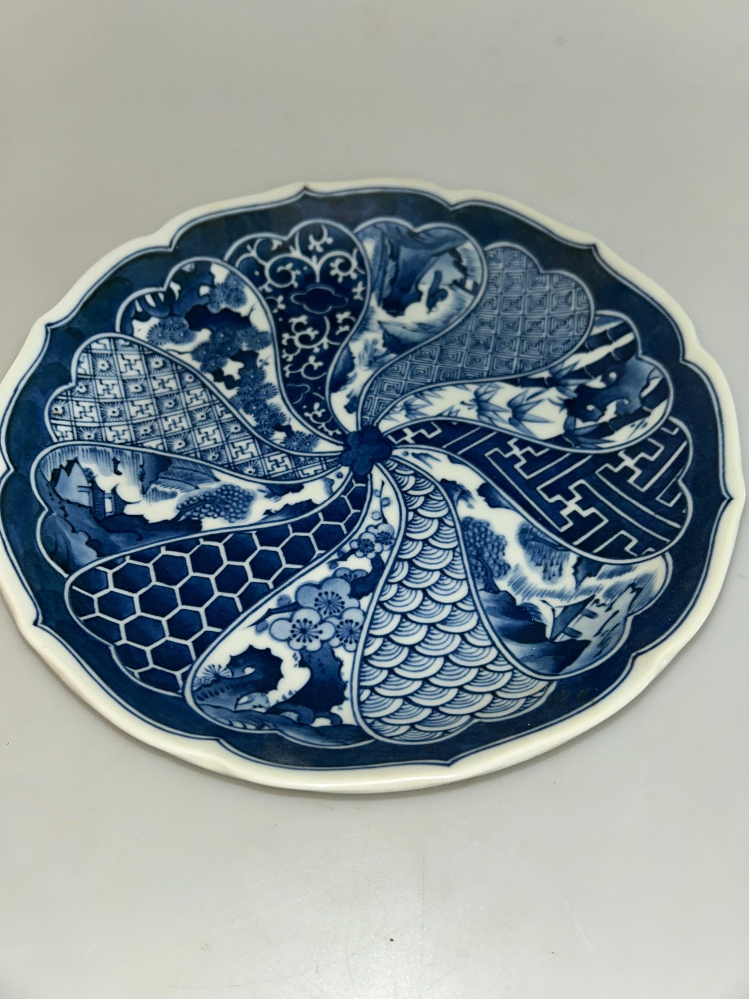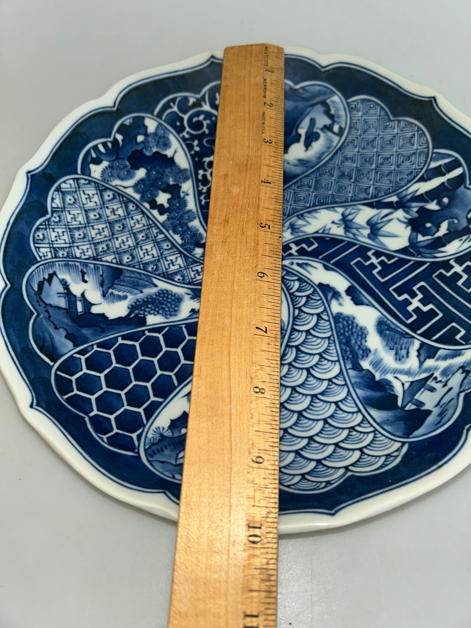 Vintage Japanese Hand Painted Imari Arita Blue & White Serving Bowl