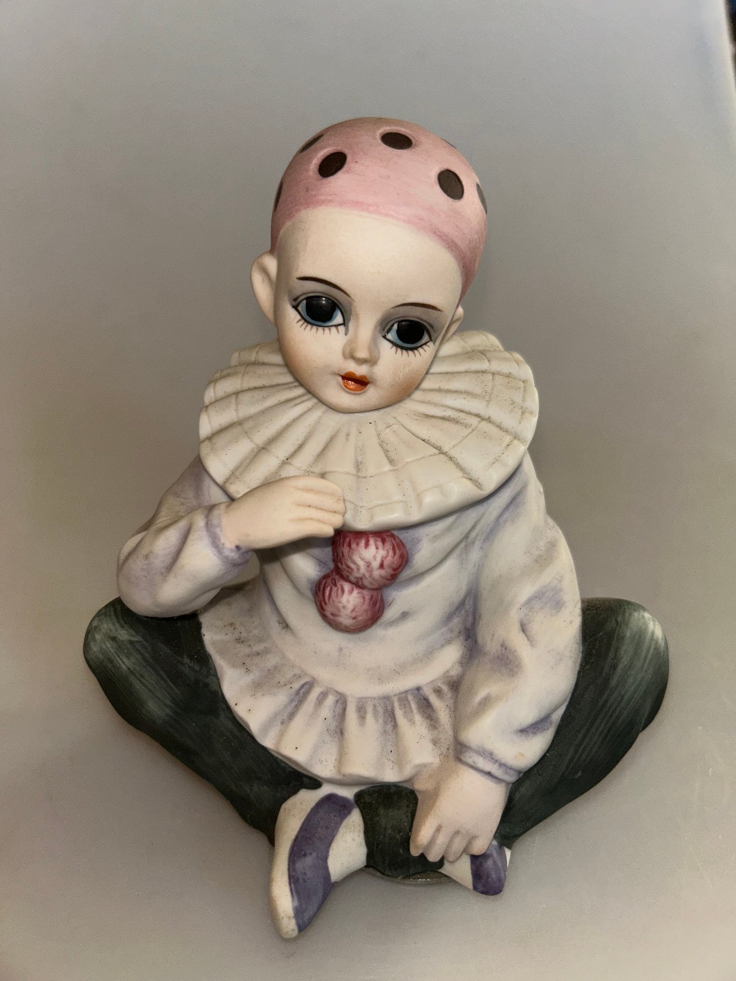 Vintage Mann Porcelain Pierrot Clown Music Box