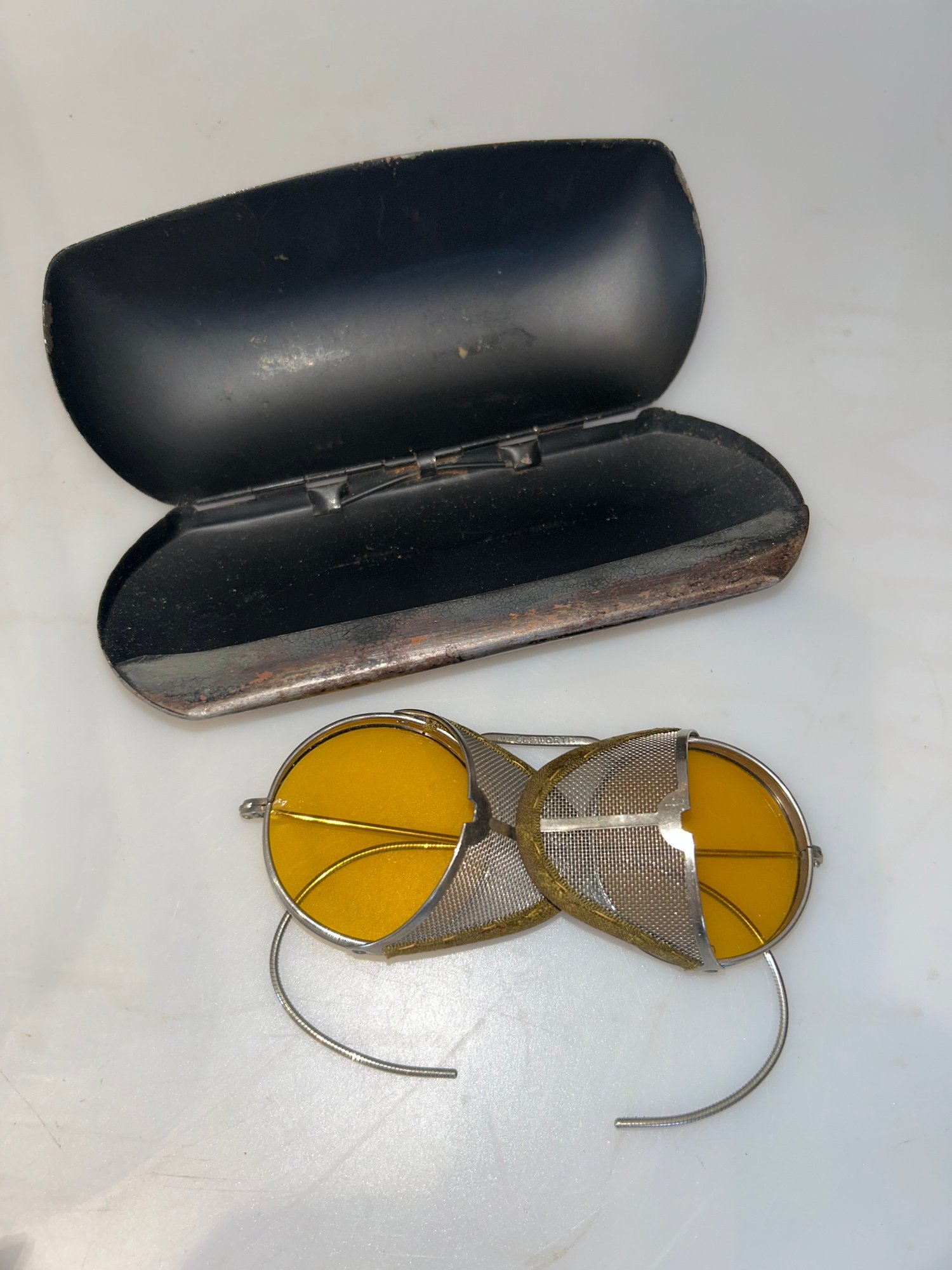 Vintage WWII Era Metal Driving Googles Eyeglasses