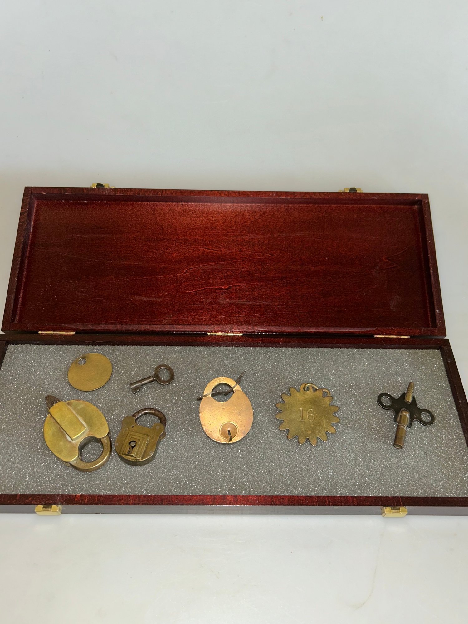 Wood Case With Vintage Lock Accessories