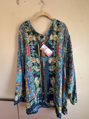 NWT Johnny Was Button Front Printed Tunic Top 3X