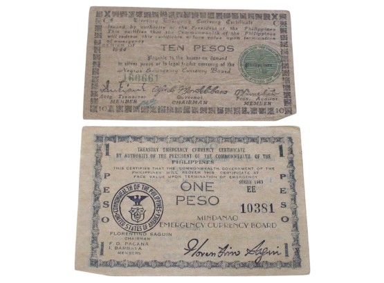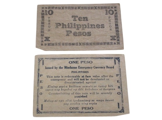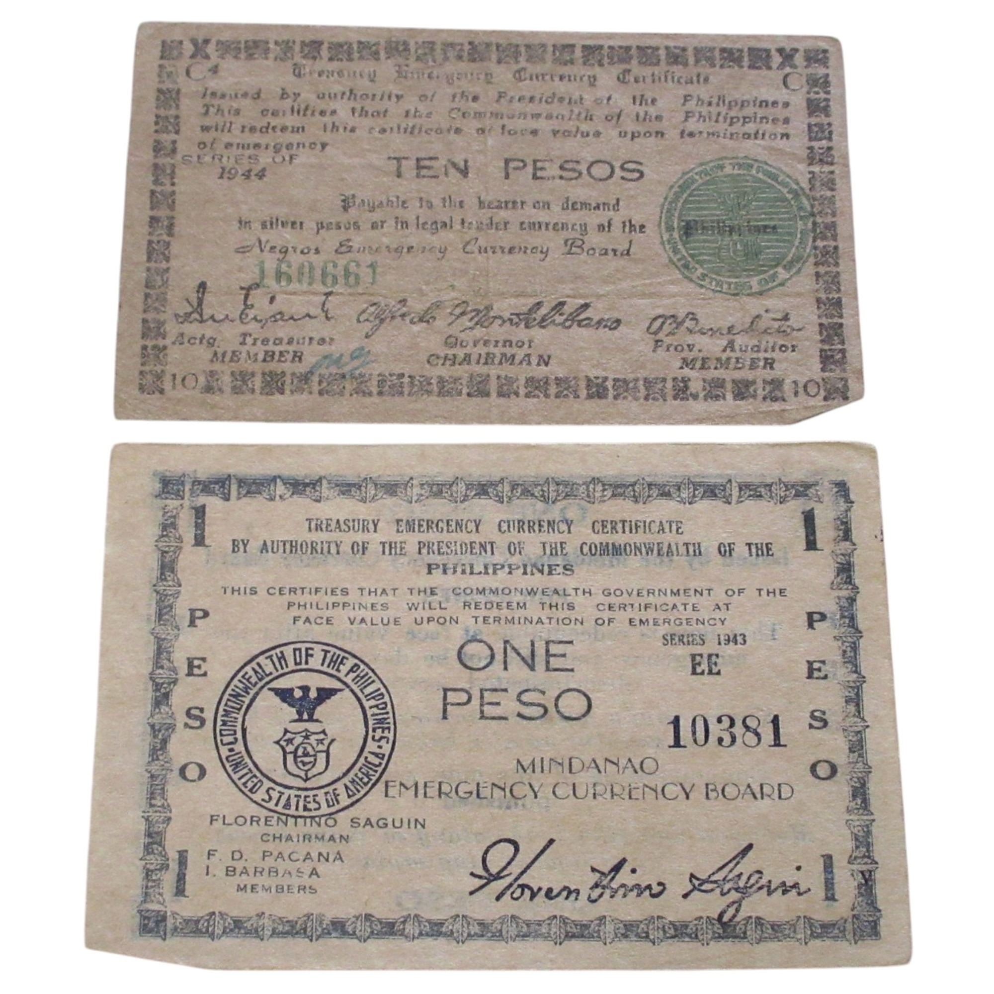 1943-1944 Emergency Philippine Pesos - Mindanao & Negros Currency Notes