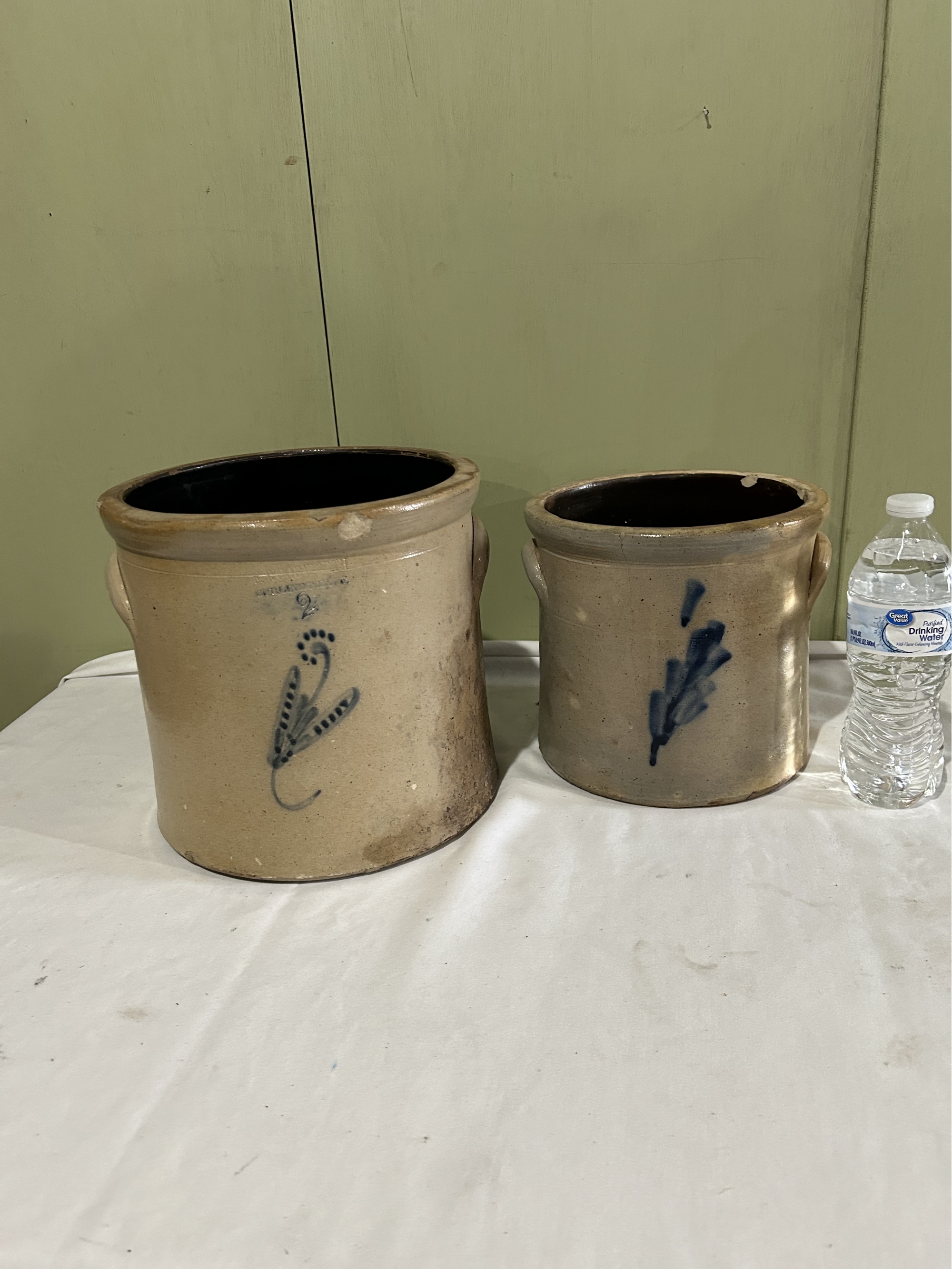 2 Gallon Burlington VT Woodworth And A 1 Gallon Crock