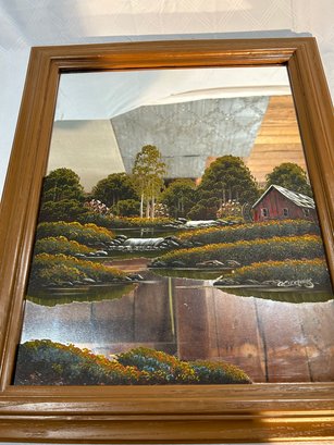 Painted Waterfall Mirror signed Clemons. 24"x19 1/2"