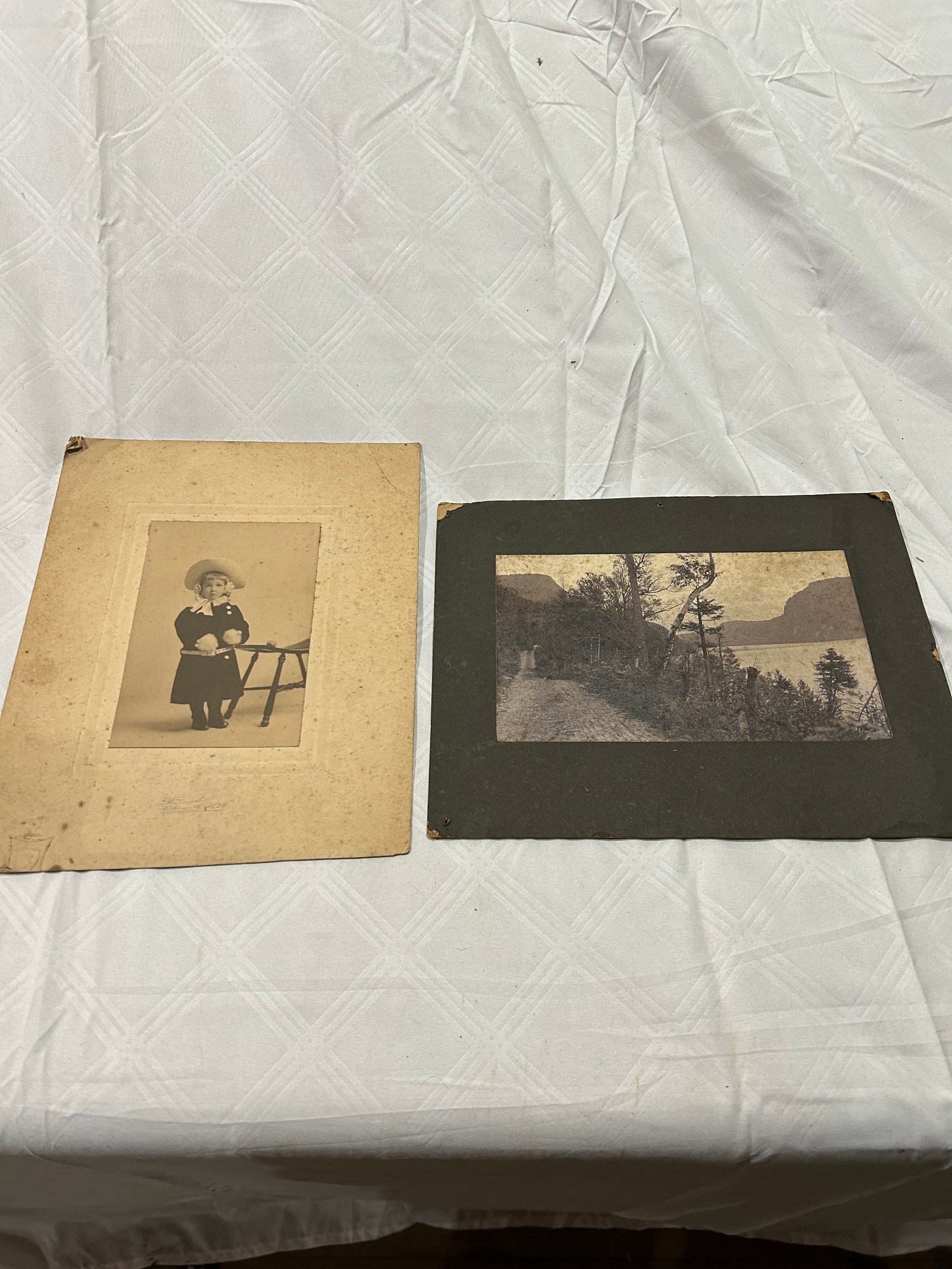 Pair of vintage Photos, Lake view or Willoughby Vermont S.D. quint Photographer Westmore Vermont aprox. 10X8. Little girl photo also 10x8.