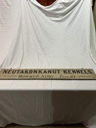 Wooden Neutakonkanut Kennels Sign Howard Almy, Prov. RI.48'x8"
