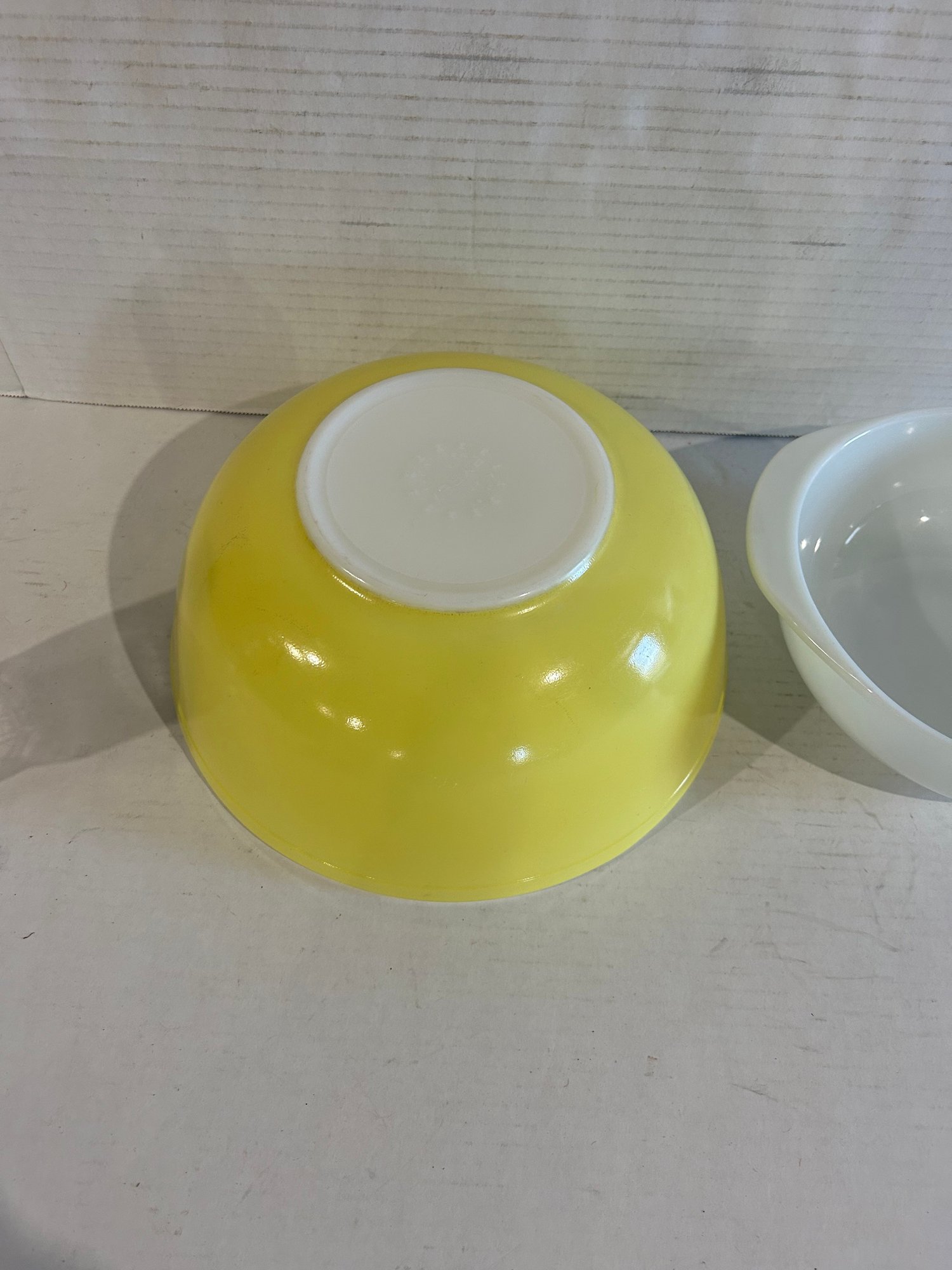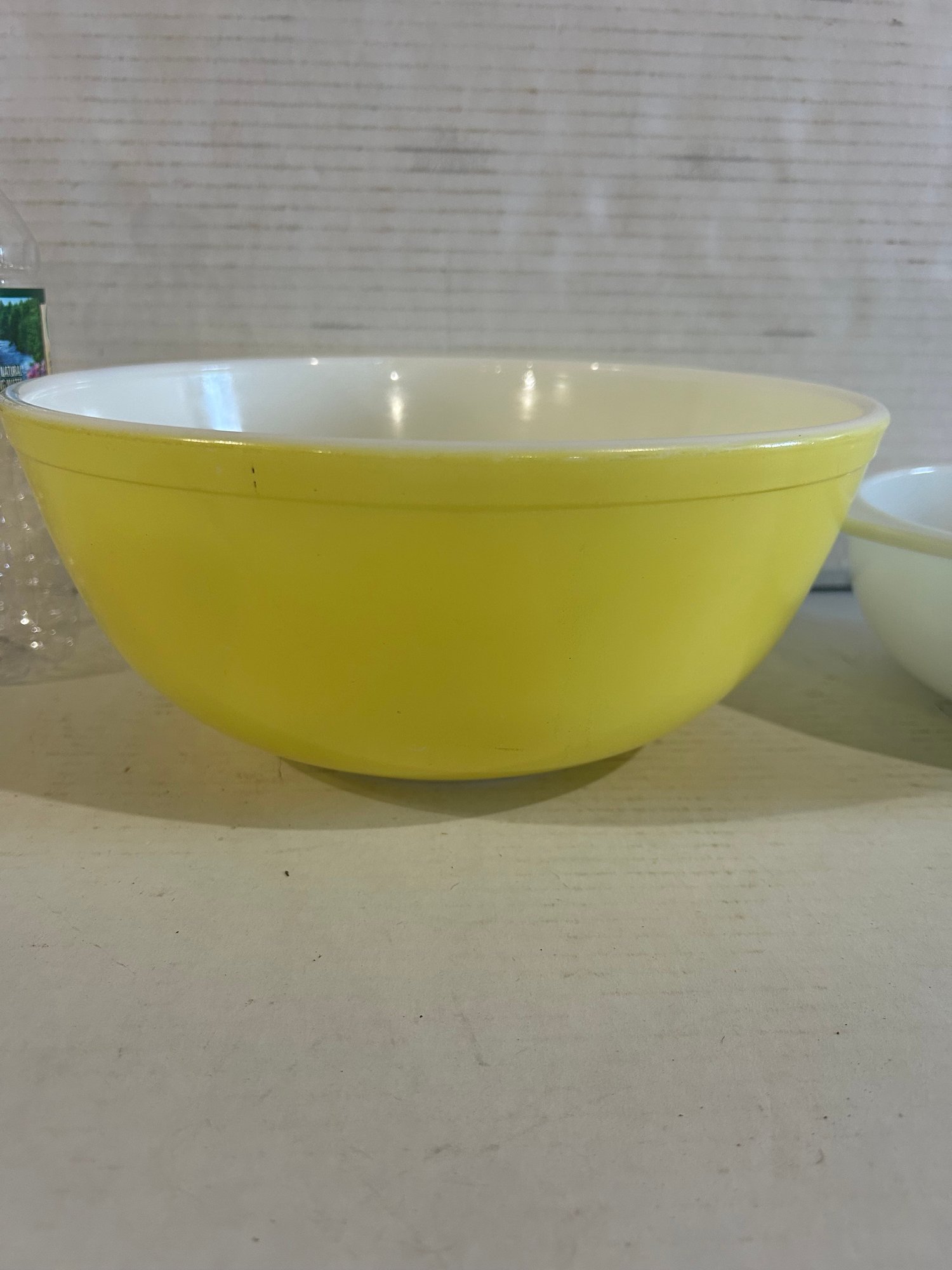 Lot 102- Two Pyrex Bowls. The Yellow Bowl Is 10 Inches