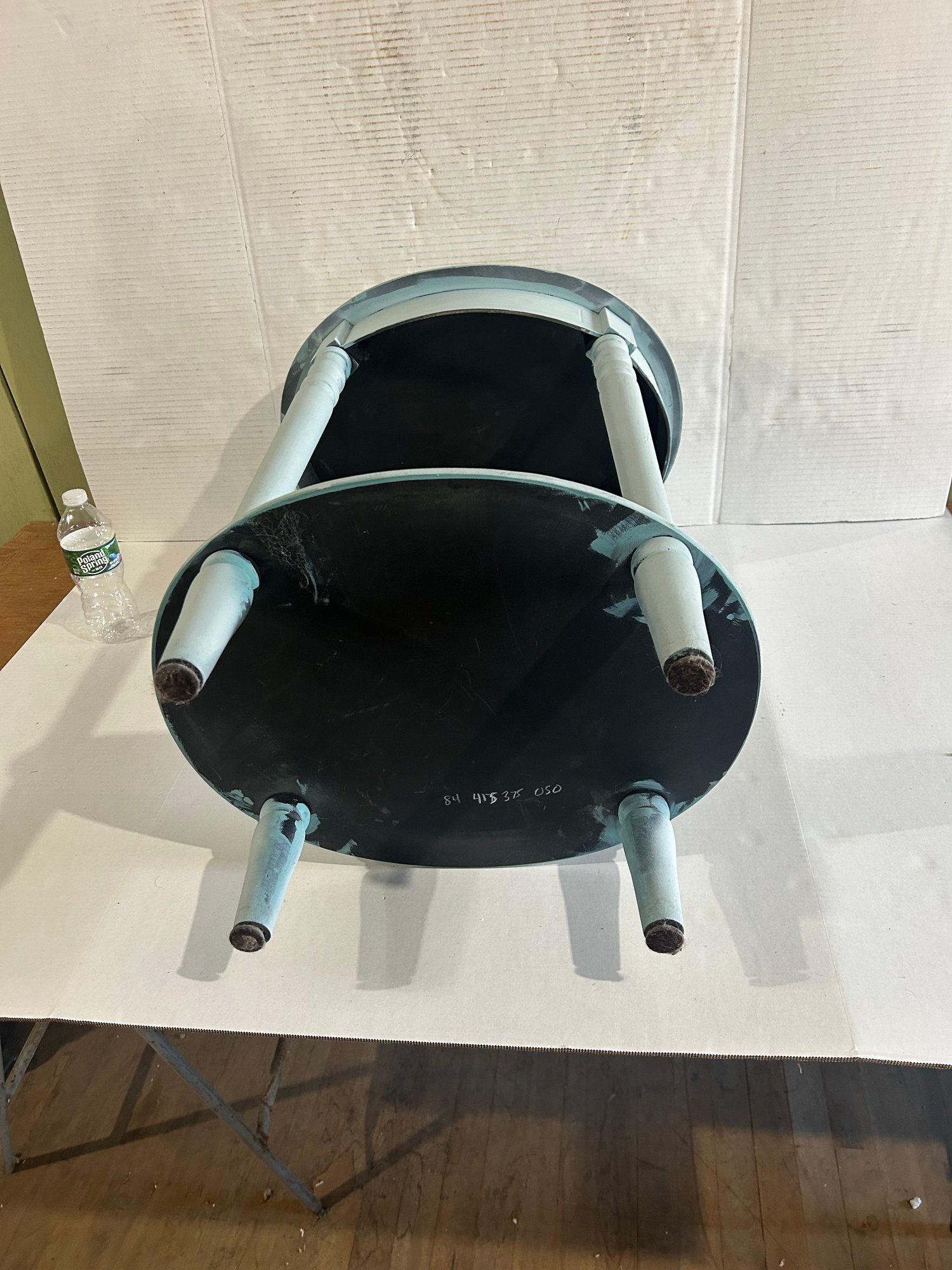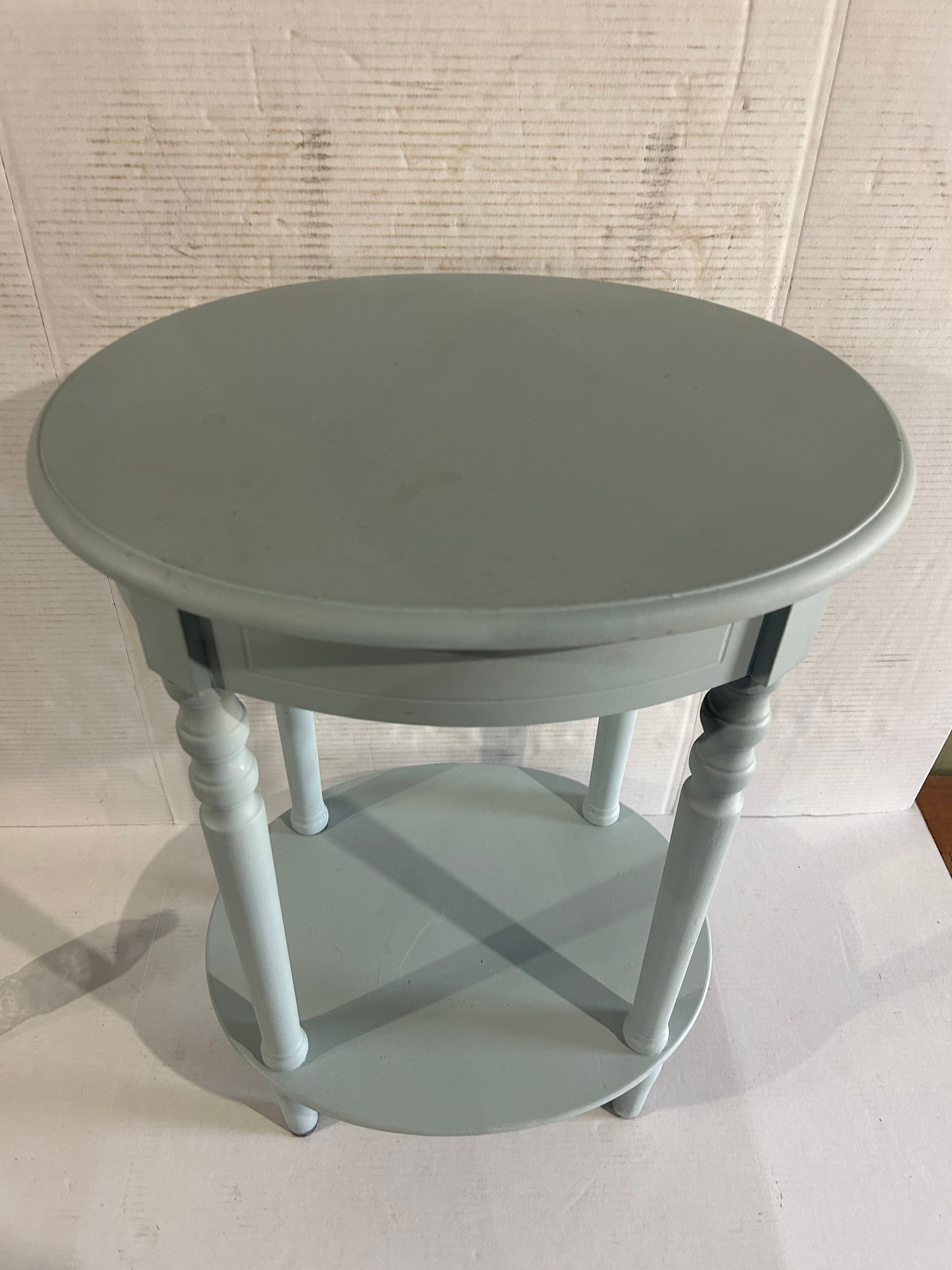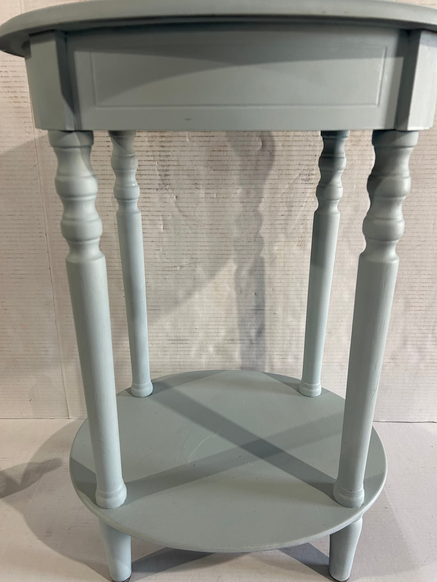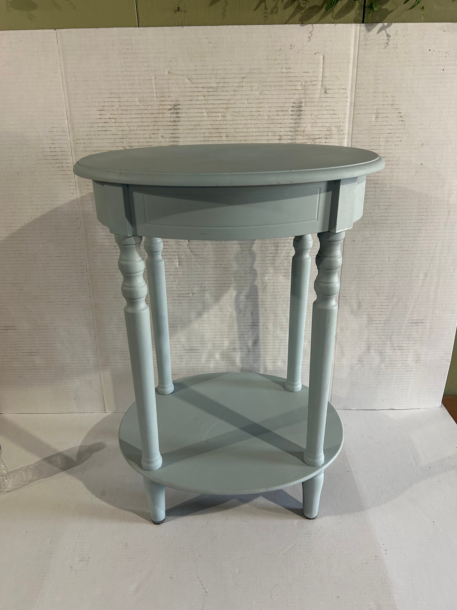 Lot 118- Oval Wooden Accent Table In Blue Paint
