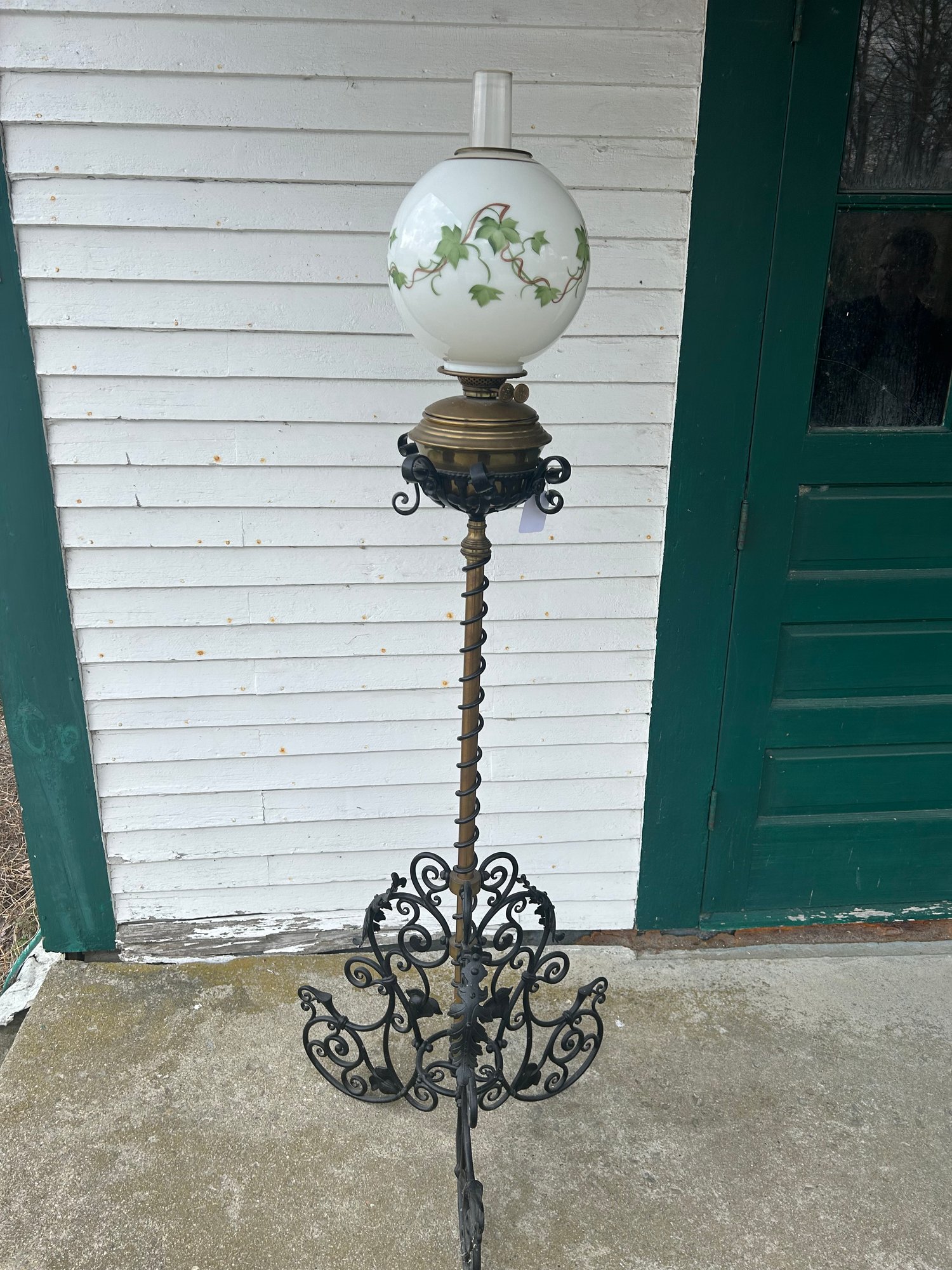 Lot 124- Piano Floor Lamp Duplex Dual Wick Cast And Wrought Iron Oil Lamp. C. 1875