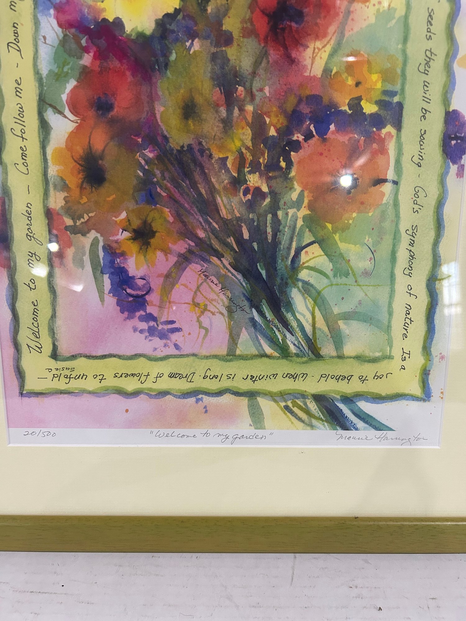 Lot 137- Framed Signed And Numbered Print Welcome To My Garden. Signed M. Harrington 16 1/2x 21 1/2