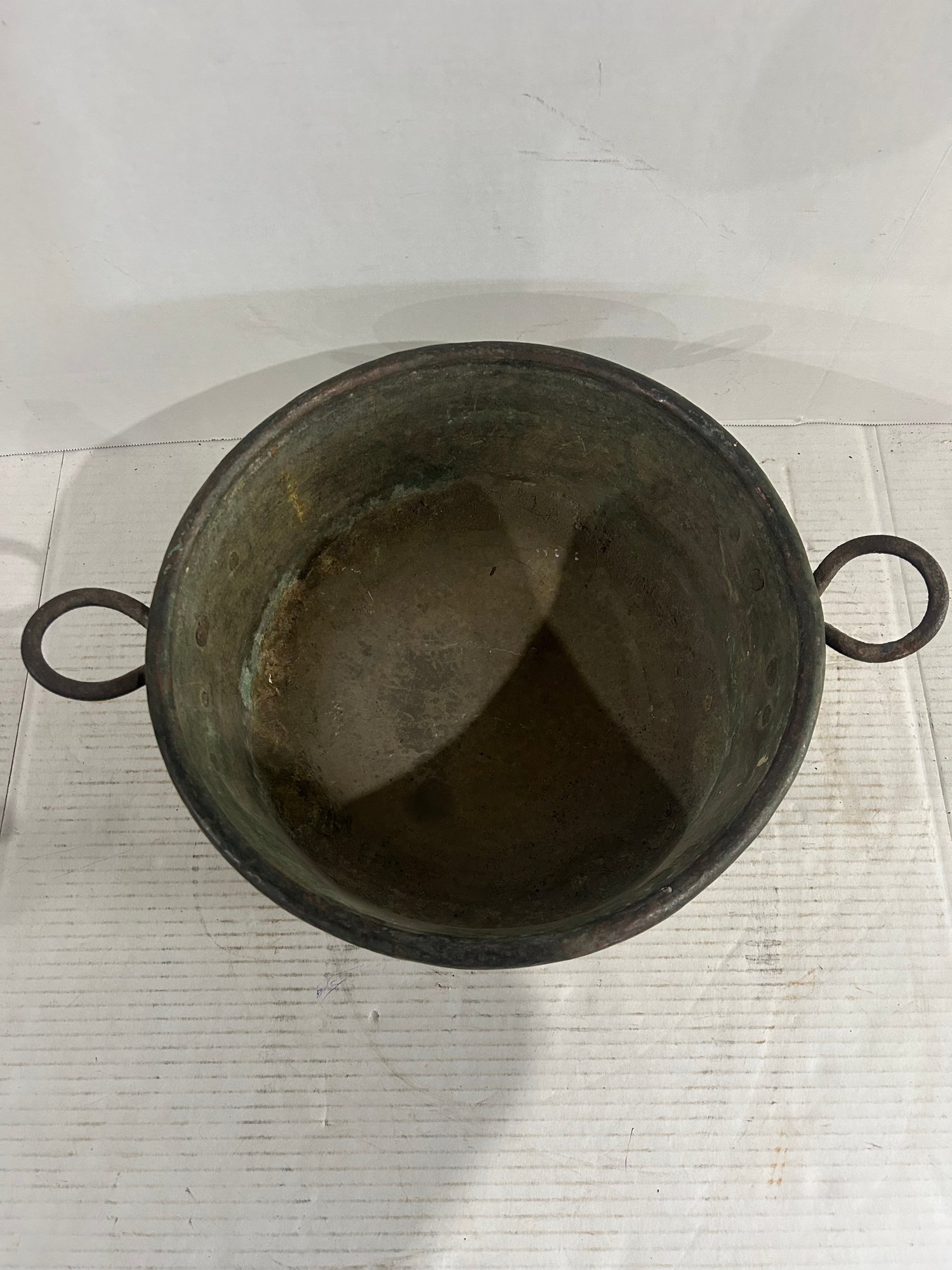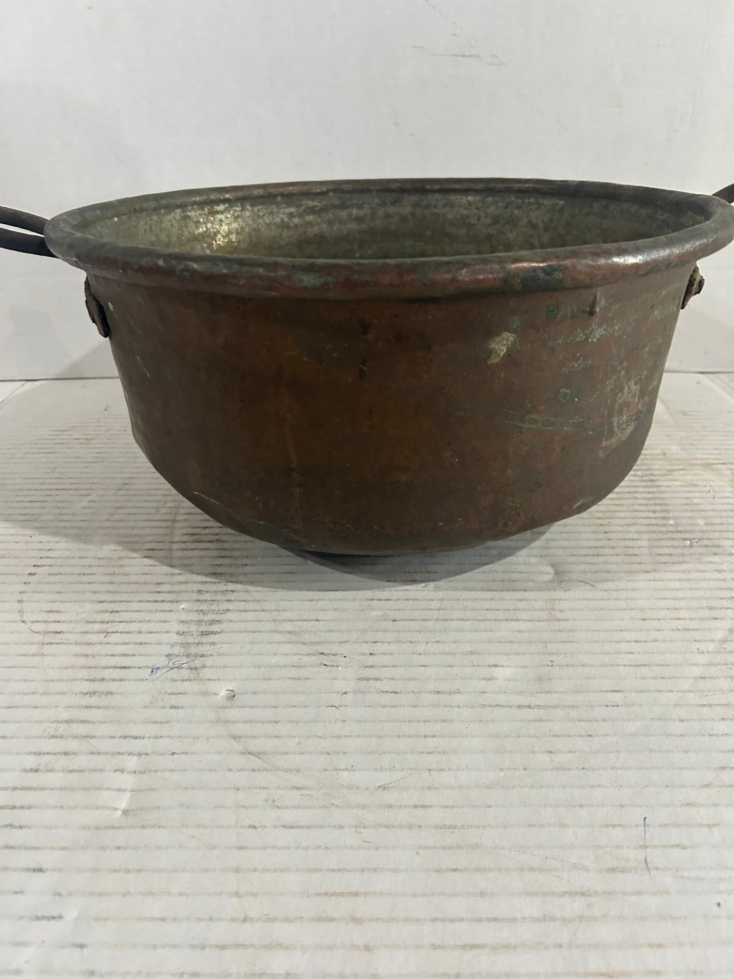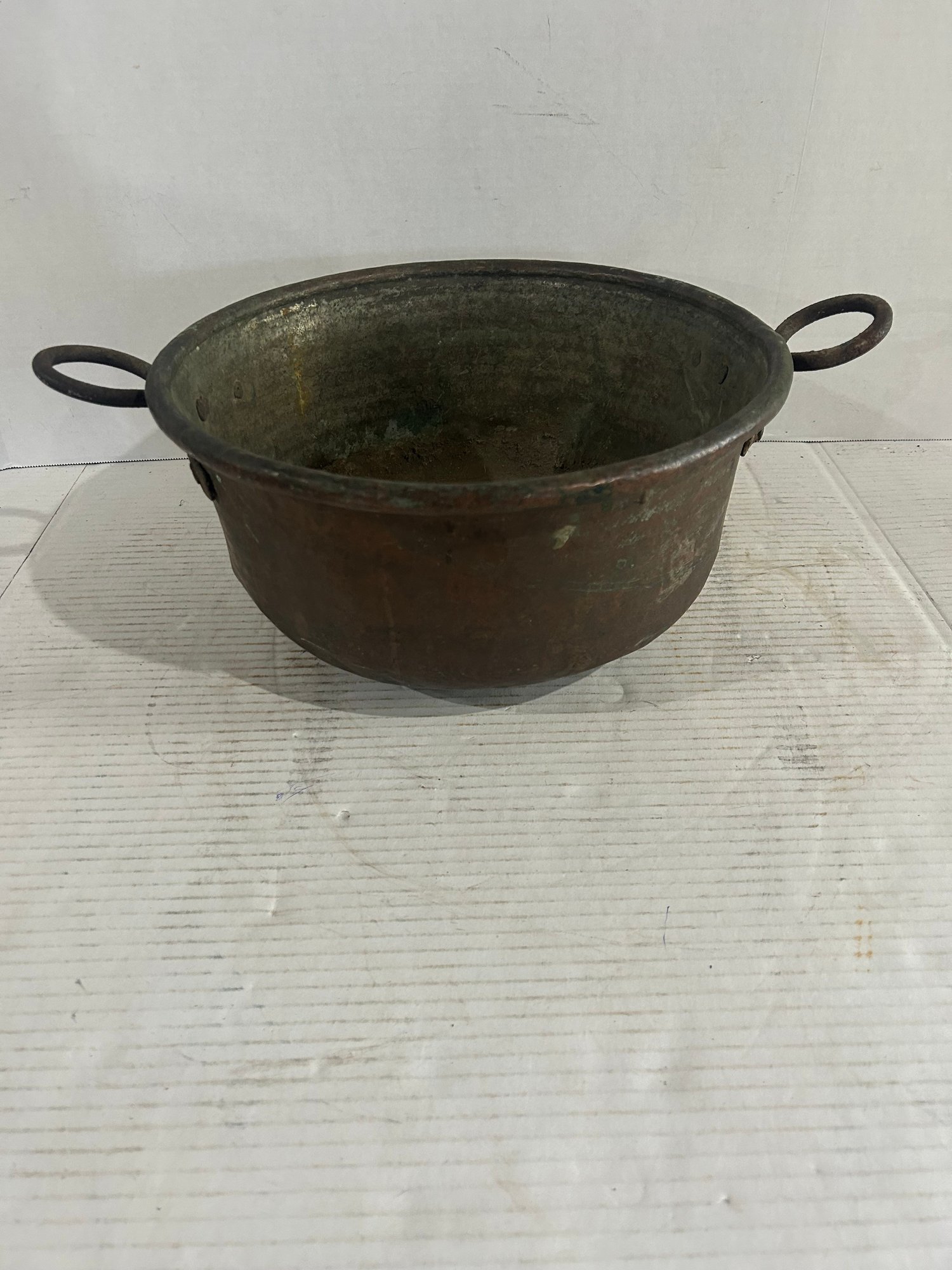 Lot 16- Antique Copper Cauldron. 13 In Wide
