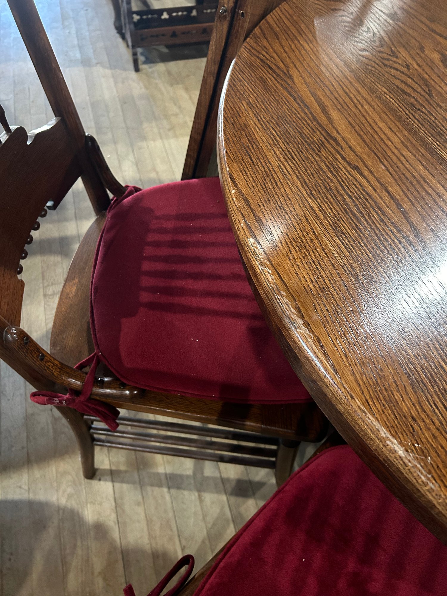 Lot 162-excellent Oak Table With Two Leafs And 6 Cane Chairs. Two Are Captain