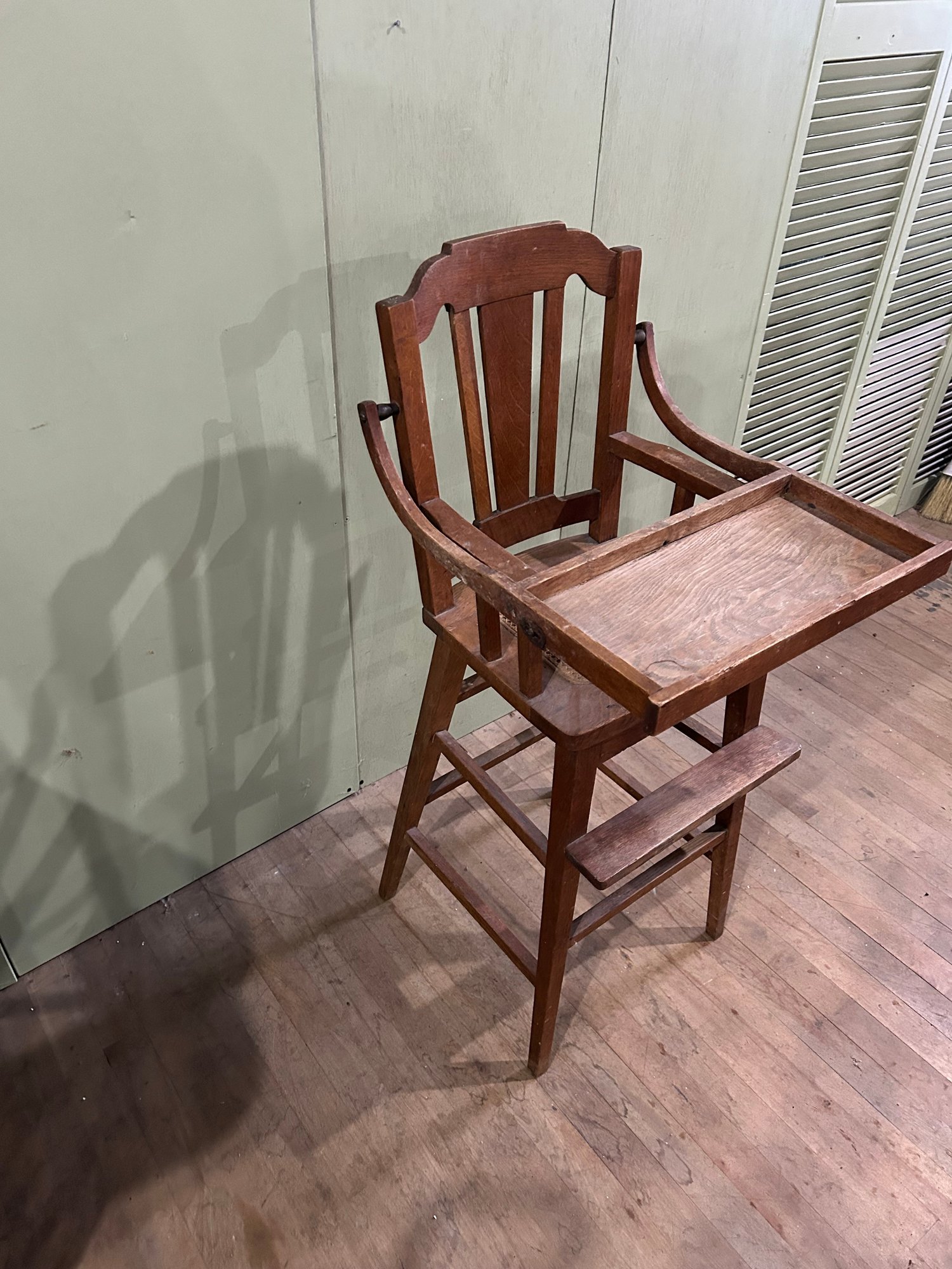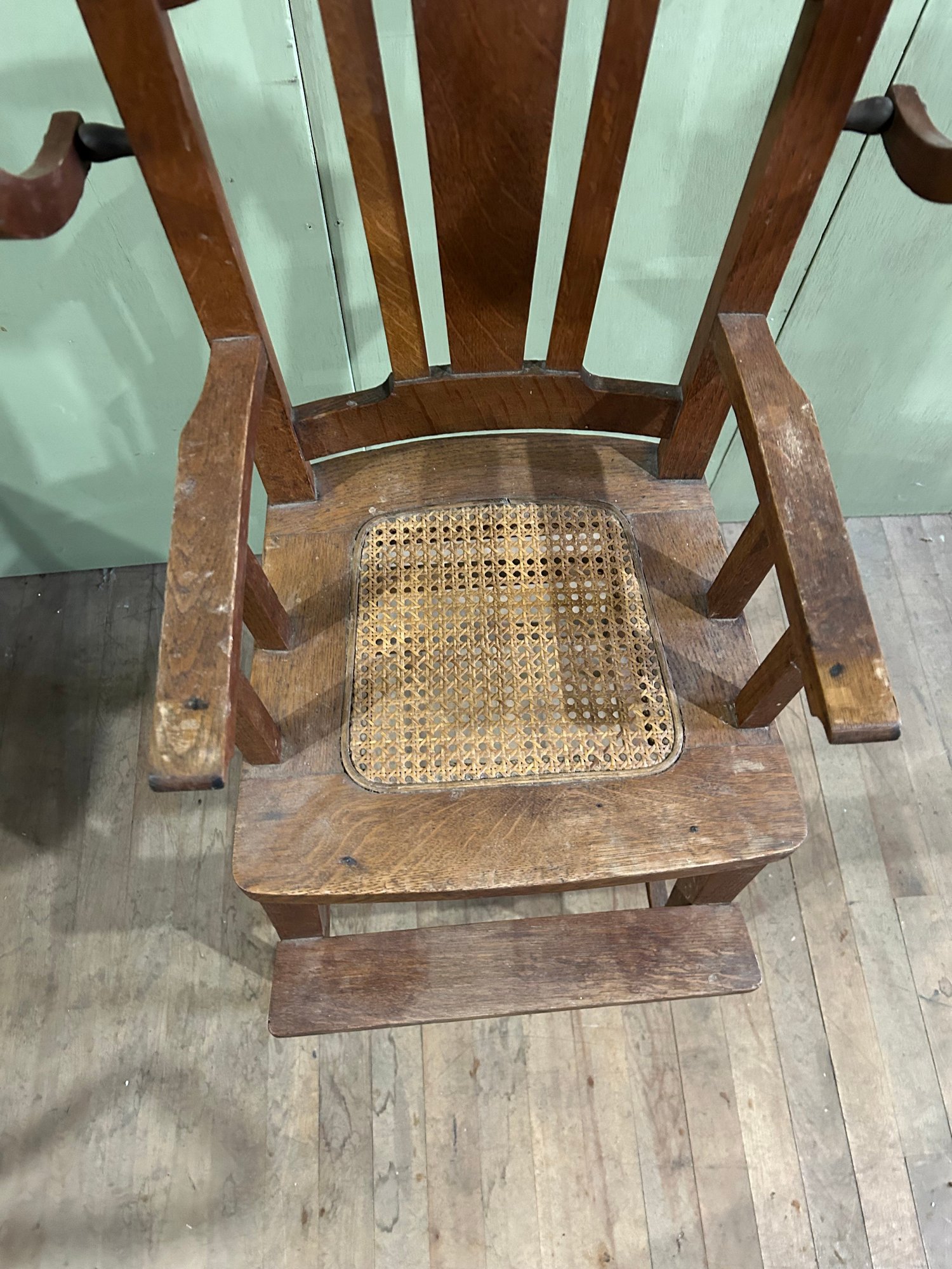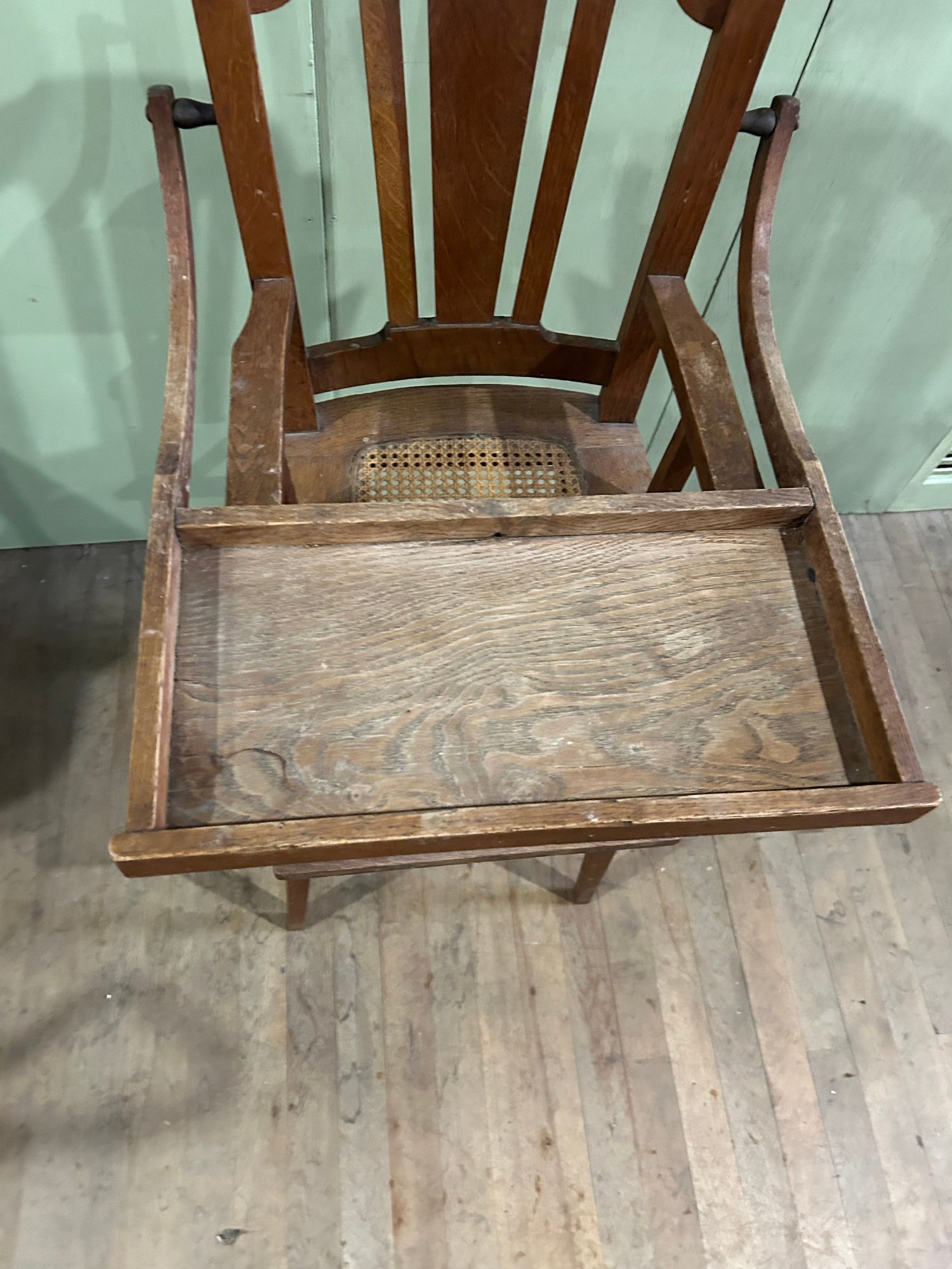 Lot 173- Oak Childrens High Chair With Tray And Cane Seat