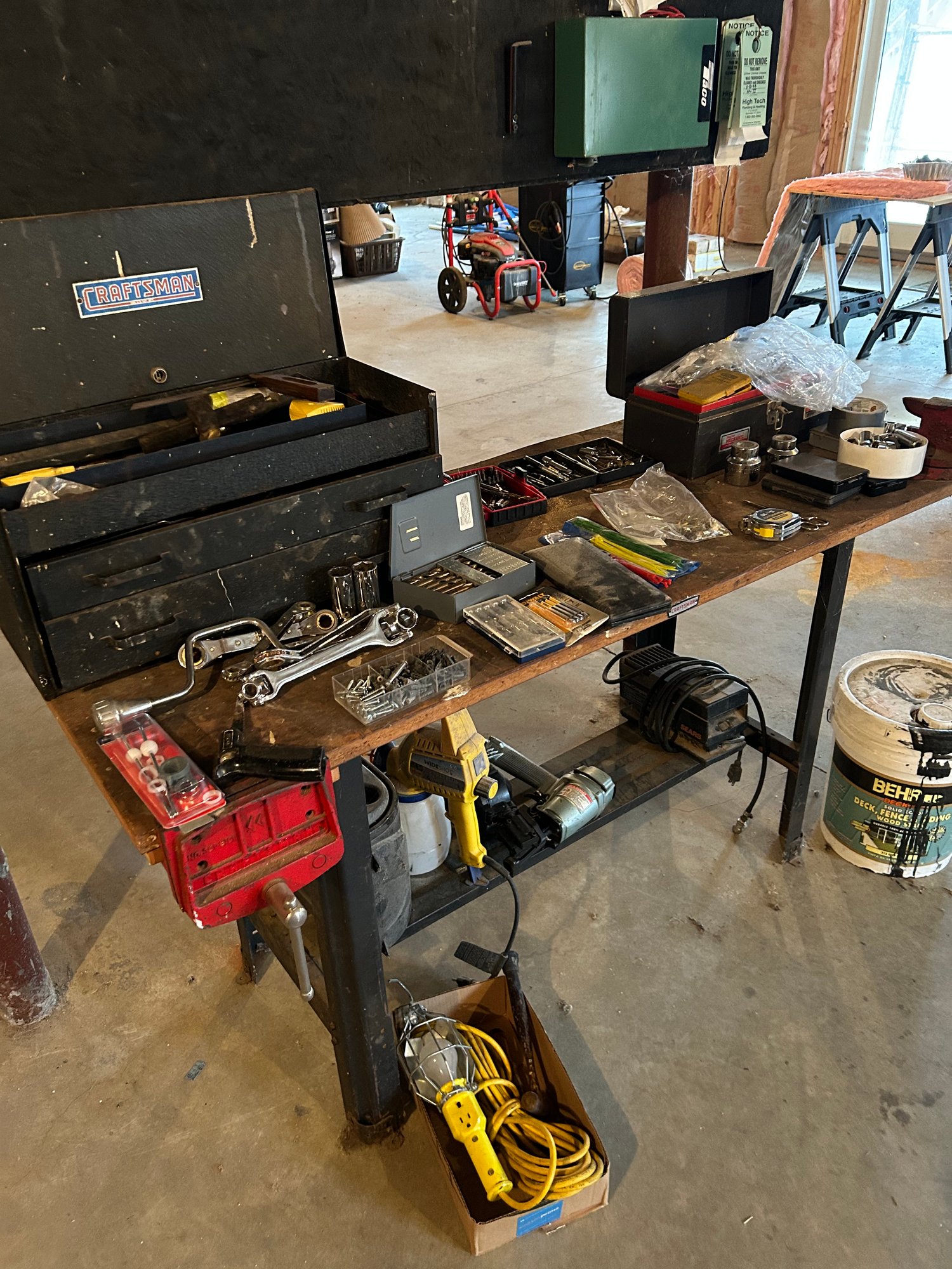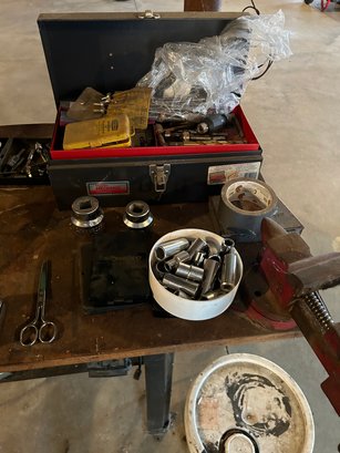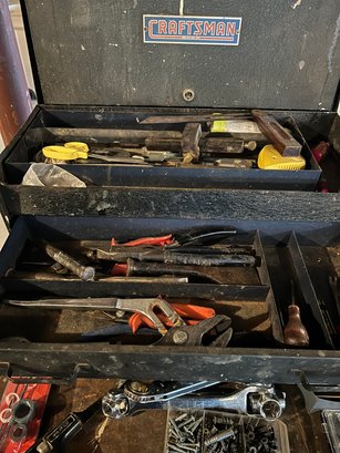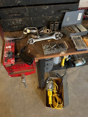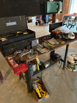 Lot 191- Craftsman Tool Bench 60Lx32hx24d Craftsman Tool Hox, Vice, Drills, And More!