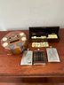 Lot 2 Dominos, Poker Chips And 3 Flasks