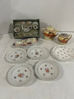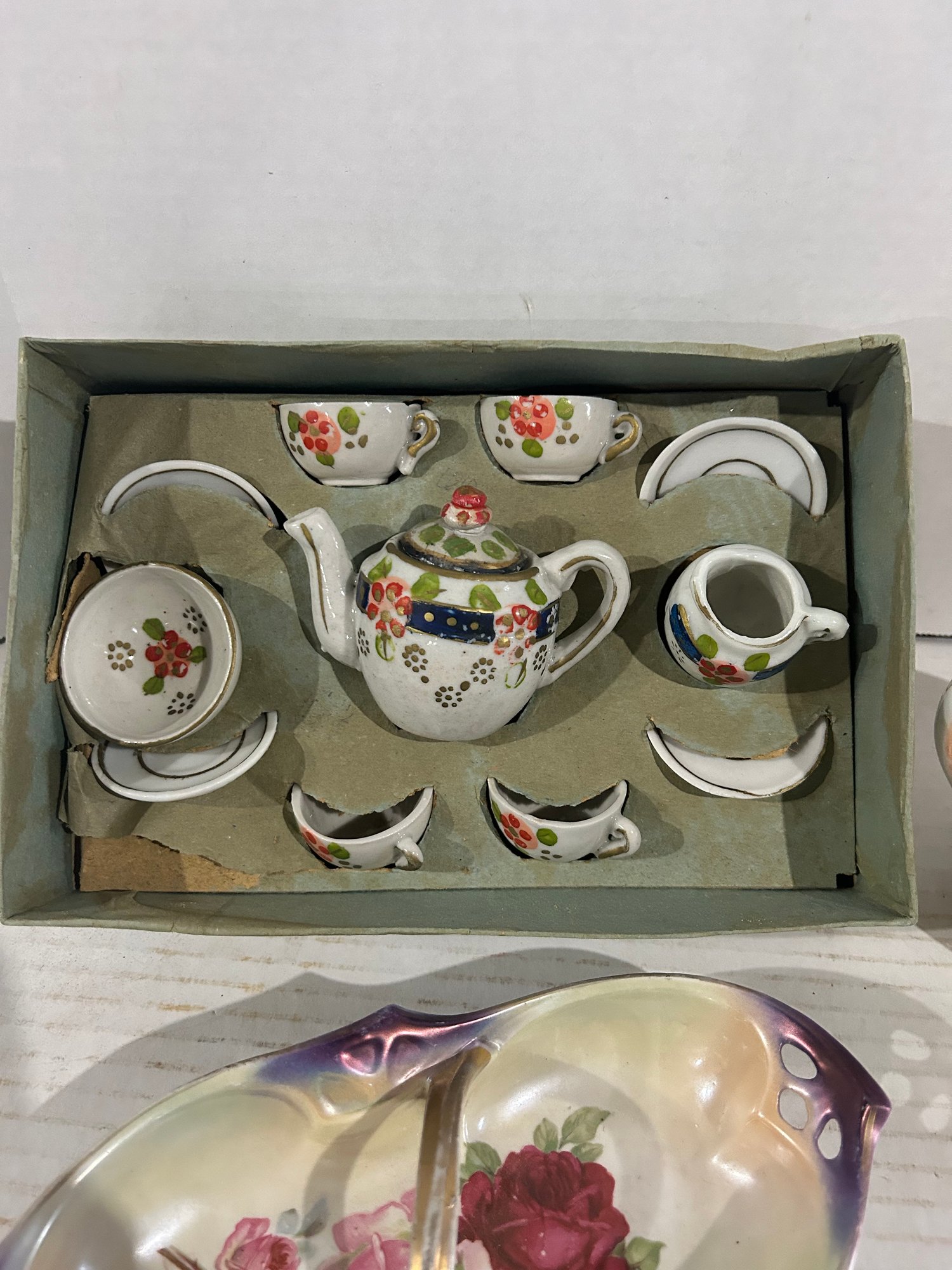 Lot 21-kids Tea Set (1919), Creamer, Sugar And Assorted Hand Painted China